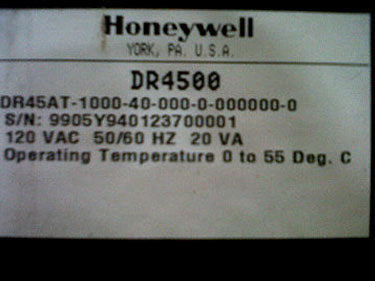 Honeywell Truline Chart Recorder. Model: DR45AT-1000-40-000-0-000000-0. S/N: 9905Y940123700001. Power supply: 120/240 V, 50/60 Hz, 20 VA set to 120 VAC. Operating temperature: 32-131°F. Other characteristics: single pen, digital display, touchpad controls. Overall dimensions: 1 ft. 2 in. L x 6-1/2 in. W x 1 ft. 4-1/2 in. H.
