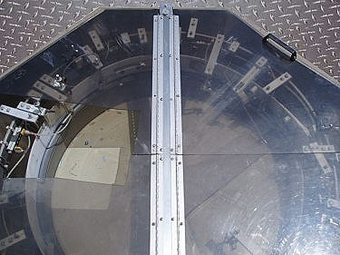 1999 Hoppmann FT50 Centrifugal Feeder. Model: FT50-1L SS. S/N: 37761. Maximum cap size: 2-1/2 in. L x 1-3/8 in. W x 1-1/2 in. H. Sorting bowl diameter: 50 in. Baldor Direct Current Motor, 3/4 hp, 1750 rpm, 90 DCV, 6.5 amp. Hoppmann's FT-50 rigid disc centrifugal feeder is specifically designed to feed and orient large parts. This feeder incorporates a patented combined disc and rim drive system. This assures tight bowl/disc gap operating tolerances. The delivery rates vary from moderate to high speeds depending on part characteristics. Infeed height: 68 in. Exit height: 42-1/2 in. Inlet: 19 in. L x 15 in. W. Outlet: 1-3/4 in. L x 1-1/2 in. W. Overall dimensions: 82 in. L x 67 in. W x 71 in. H.