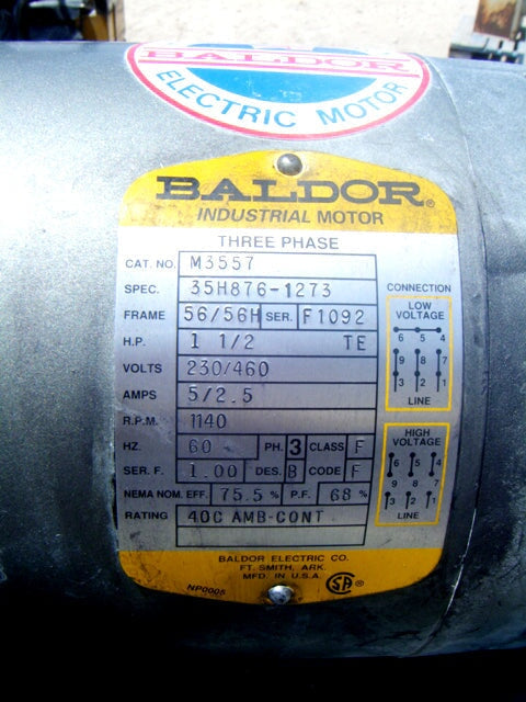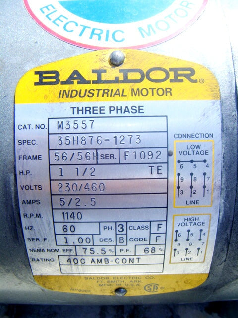 - Motor Manufacturer: Baldor