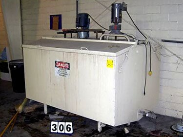 Horizontal Steel Jacketed Mixing Tank. (2) mixers. Overall Dimensions: 4 ft. W x 6 ft. L x 3 ft. H.