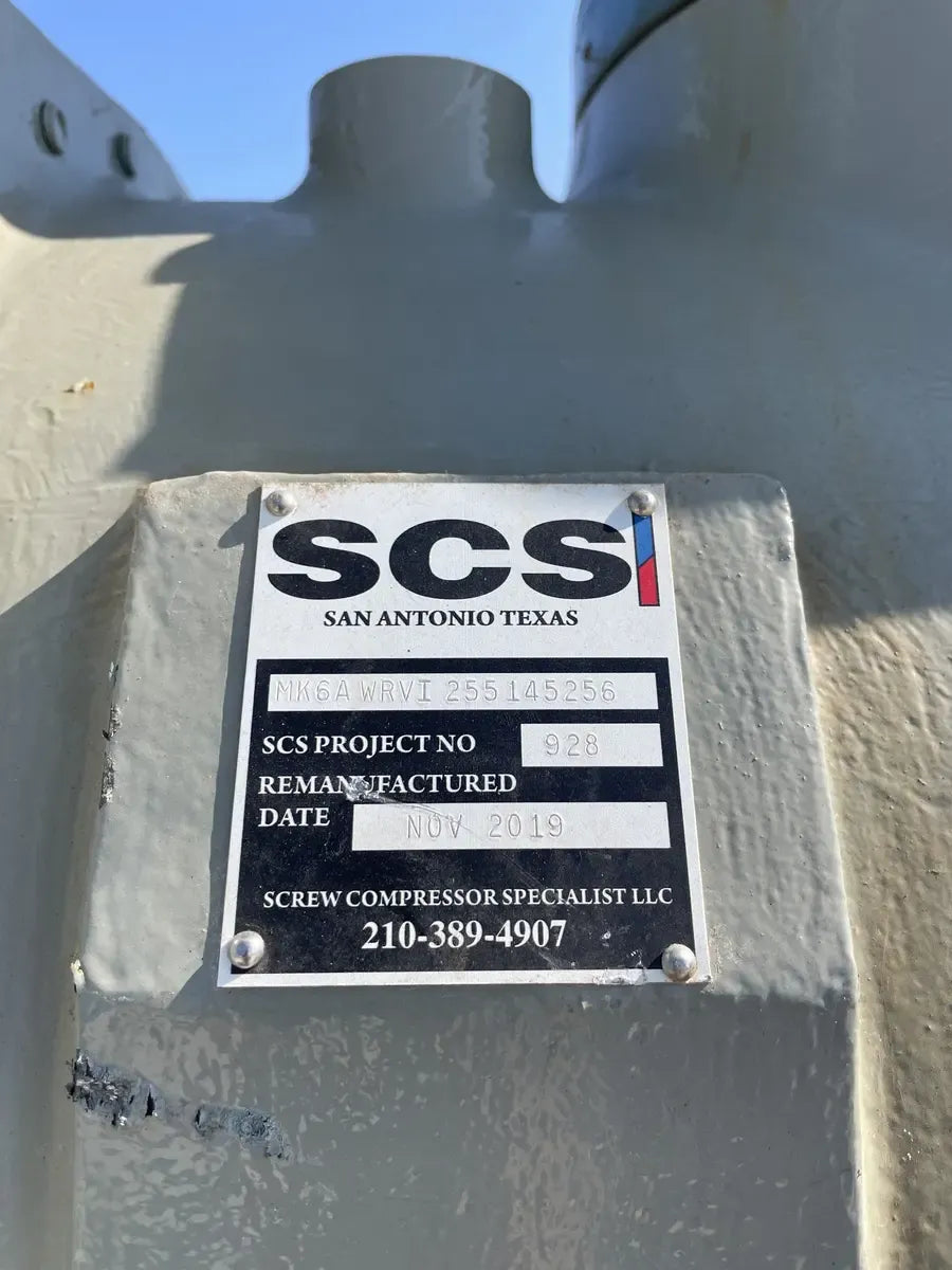 Howden Rotary Screw Compressor Package. The Bare Screw Compressor has been rebuilt by SCS in San Antonio, Tx November 2019. SCS Project No: 928. Model: WRVI255. Serial No: MK6AWRVI255145256. Howden Bare Screw: Serial No: MK6A/WRVI255145/256, Contract No: J07150 VR25306-1MNN, Hydraulic Test Pressure: 42.00 Bar (609 PSI), Max Working Pressure Outlet: 24 Bar ( 348 PSI), Max Working Pressure Inlet: 7.00 Bar ( 101 PSI). Powered by Baldor Industrial Motor: Cat No: EM2562T-4, HP: 200, AMPS: 221, Volts: 460, Frame Size: 444TS, RPM: 3565, Hz: 60, PH:3. M&M Micro Control Panel: Model: H146 BT, Serial No: 04 M-115-0200A, Voltage/Freq: 120/1/50,60Hz, Max FLA: 36. M&M Oil Separator: National Board: 2218, MAWP: 300 PSIG @ 300 F, MDMT: 0 F @ 300 PSIG. Serial No: 04A087, Year Built: 2004.