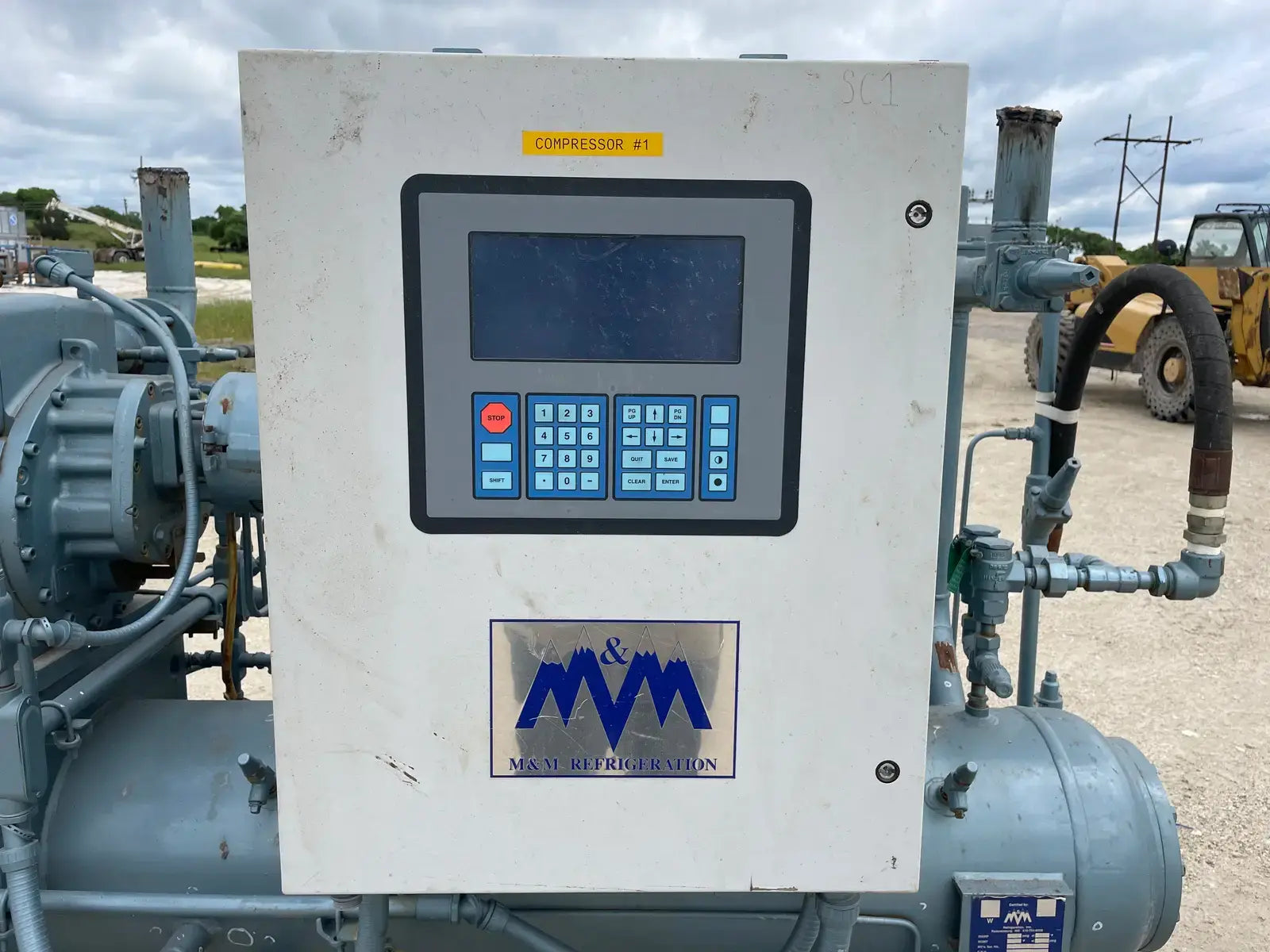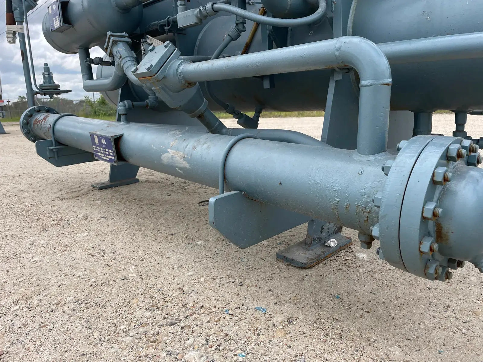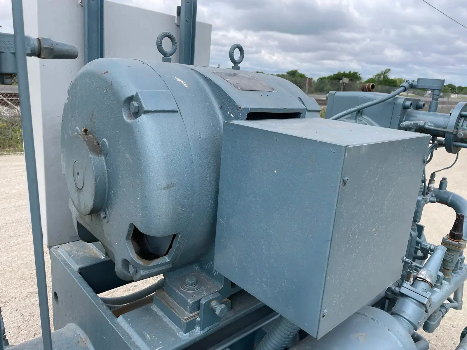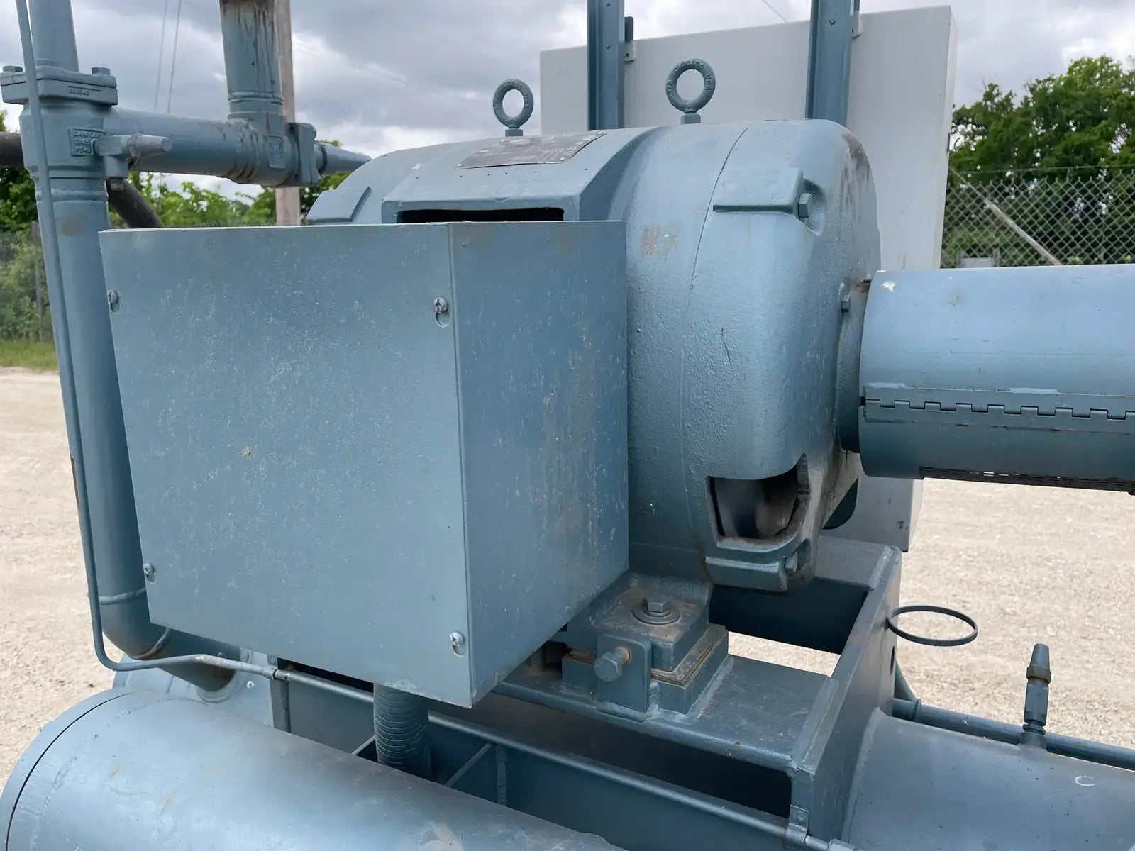 Howden Rotary Screw Compressor Package. Serial No: MK4/XRV127R3/1660. Contract No: J013705XR12304-1EN. Hydraulic Test Pressure: 37.00 Bar G. Max Working Pressure - High Side: 21.00 Bar G. Max Working Pressure - Low Side: 5.00 Bar G. Max Input Speed: 3600 RPM. Gear Ratio: 1.353. Suction Port: 4 in. Discharge Port: 2 in. Certified by M&M Refrigeration Oil Separator: National Board: 3001. MAWP: 300 PSI @ 300 F. MDMT: 0 F @ 300 PSIG. Marathon Electric Motor: HP: 125, RPM: 3565, Volts: 460, Hz: 60, FLA: 138.