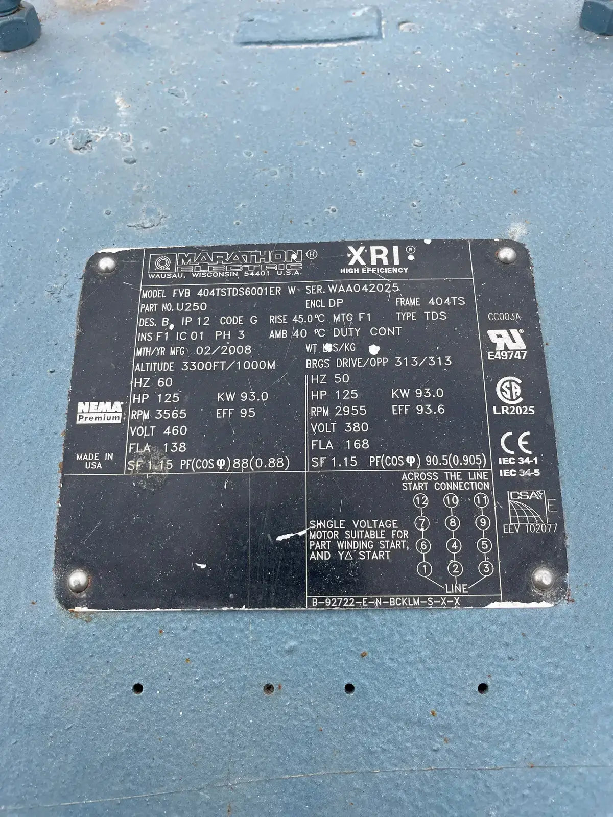 - Motor Manufacturer: Marathon