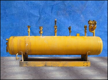 1985 Howe Corporation Horizontal Receiver. Model: PVL265. Approximate capacity: 200 gallons. Refrigerant: Last used with Freon. Inside straight-wall dimensions: 2 ft. dia. x 8 ft. 7 in. L. Working pressure shell side 350 psi @ 650º. Inlets/Outlets: (2) 2 in. dia. port. (1) 1 ½ in. dia. port. (2) 1 ¼ in. dia. port. (2) ¾ in. dia. port. (1) ½ in. dia. port. Overall dimensions: 10 ft. 3 in. L x 2 ft. 3 in. W x 4 ft. 10 in. H.(ACN95-85).