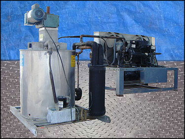 This system includes a Howe 31-E flaked-ice maker and KRam Industrieser Air-Cooled Freon Condensing Unit. These are the major component parts required to output approximately 6,000 pounds of ice per day (3 tons). Power required for Howe drive motor: 115/208-230 V, 8.0/4.1 amps, 60 Hz, single phase. Power required for KRam Industrieser compressor and fan motors: 208/220 Volt, 31.2 amps, 60 Hz, 3 phase. If customer desires, Genemco can complete the system, test run (with electricity, water, refrigerant), and video test for customer approval at additional cost.(ACN248).