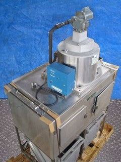 1998 Howe Ice Flake Machine. Model 2000-RL, S/N 010F98F1836, S.O. No: 30508. Ice production: 2,000 lb/day. Refrigerant: R-22. Ice enters through a 20 in. L x 15 in. W inlet into an accumulation chamber and exits through (2) 11-1/2 in. L x 9-1/2 in. W outlets. (2) 18 in. W x 14-1/2 in. H access doors, with sliding windows, allow access to chamber. Ice can be easily removed with (2) 6.2 cu. ft. capacity push carts with 3/4 in. dia. FPT bottom drains. Marathon Electric Motor: 1/3 hp, 1735 rpm, 115/208-230 V, 60 Hz, 1 phase. Winsmith 920 Motor Drive: 250 ratio, 1750 rpm (input), 6.94 rpm (output), 938 lb-in. torque. Inlets/outlets: (1) 1/4 in. dia. male ferrule, (1) 1/2 in. dia. barb fitting, (1) 1 in. dia. copper tubing. Overall dimensions: 60 in. L x 38-1/2 in. W x 108 in. H. (ACN135)