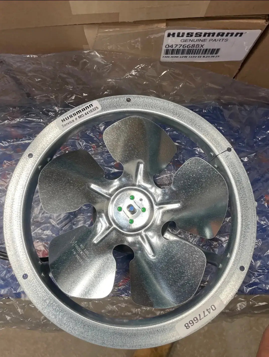 Hussmann Energy Efficient Fan Assembly. Power Supply - 12W/115 V. Size - 8.25 inch, 25-Degree Blade.