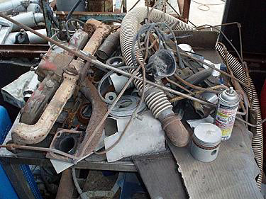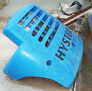 Hyster Forklift. Model: H80C. S/N: C005D16987. Motor stamping: F227A-605-W H 2. Fuel: gasoline. 6-Cylinder. Firing order: 1-5-3-6-2-4. Spark plug: Champion D16. Spark plug gap: set @ 0.025 in. Cylinder bore (as of 7-19-07): 3.3505 in. Intake valve diameter (as of 7-19-07): 1.517 in. Exhaust valve diameter (as of 7-19-07): 1.1985 in. Fork dimensions: 44 in. L x 5 in. W. (4) Front tires: GBC Powermaster Industrial, nylon, tubeless, 12-ply rating, size: 7.50-15 NHS. (2) Rear tires: MasterLift XtraWall PrimeX, tube type, size: 7.00-12 NHS. Overall dimensions: 12 ft. 6 in. L x 69 in. W x 84 in. H.
