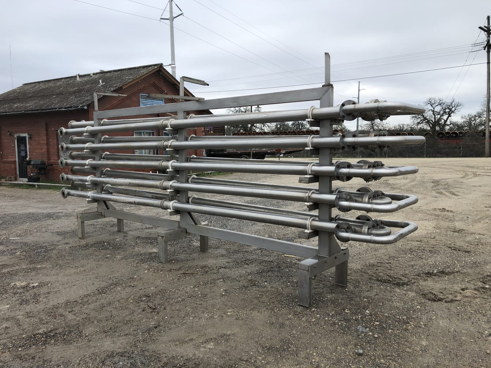 Stainless Steel Insulated Holding Tubes - 20 ft. L. Tube Quantities: (5) 2- 3/4 in. Number Of Passes (10) 2-3/4 in. Fitting type: Sanitary Tri-Clamp. Overall dimensions: 258”L x 42”W x 100”H.