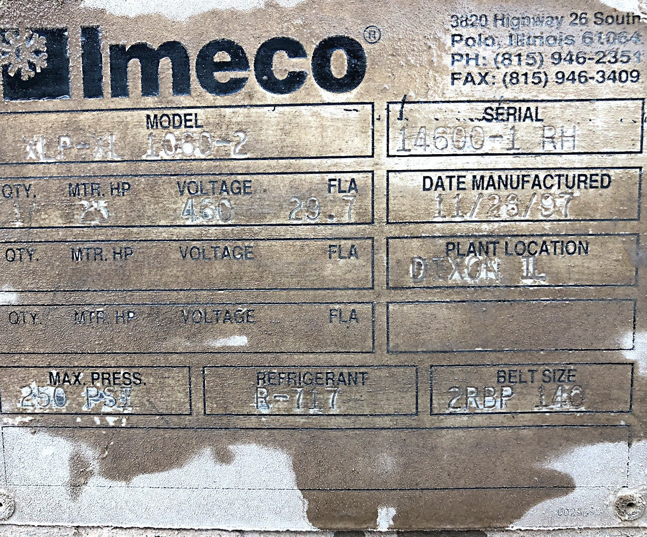Imeco XLP-XL-1060 Evaporative Condenser (1,060 Nominal Tons,1-25 HP Motor)