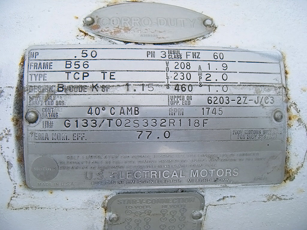 - Motor Manufacturer: US Electrical Motor