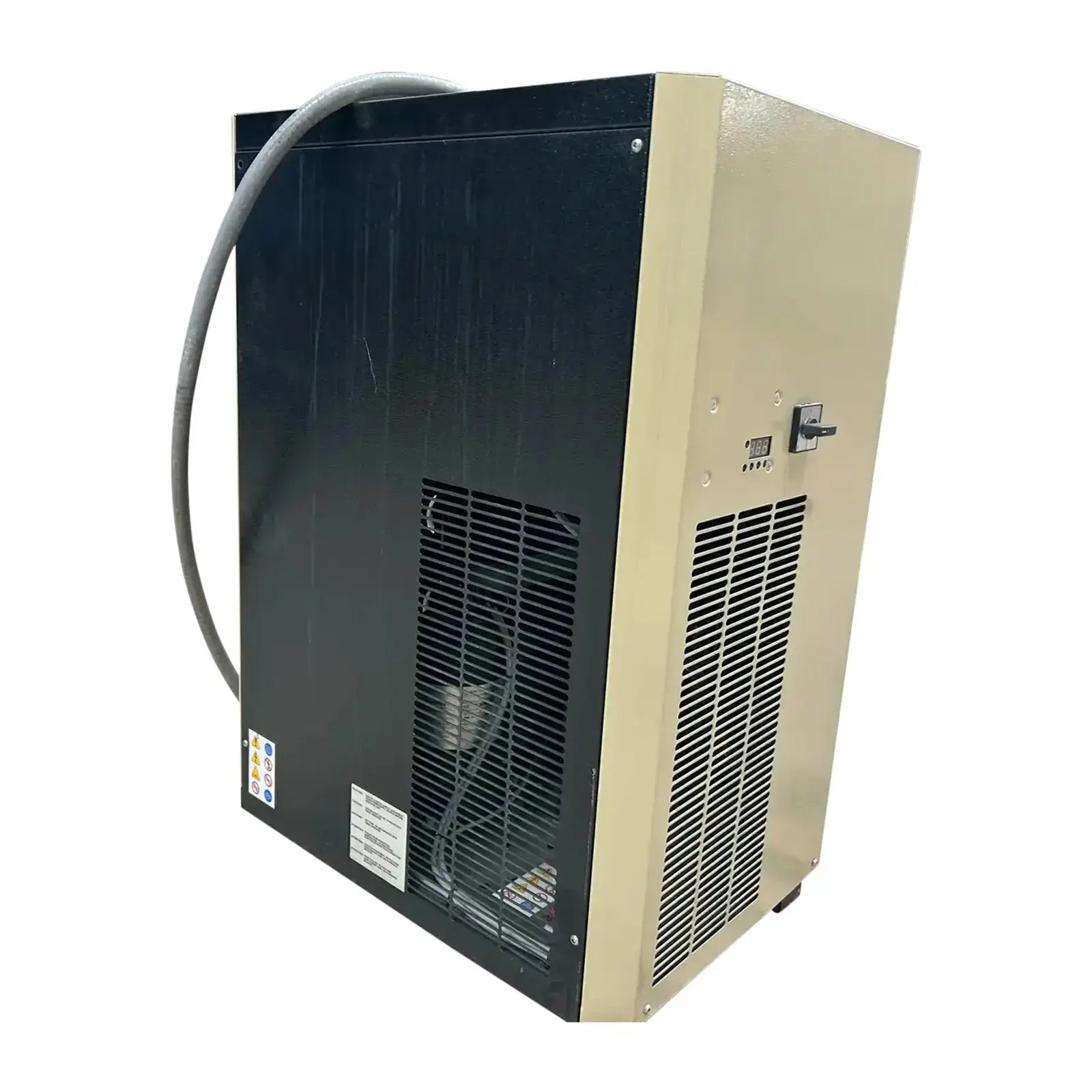 Ingersoll Rand Direct Expansion Compressed Air Dryer. Model: D300IN. Air Flow: 176 CFM. Power Supply: 230v/1Ph/60Hz. Total Amps: 8 Amps. Cooling Fluid Refrigerant: R-407C-32 oz. In.Air Max Temp: 140 F. Max Temperature: 122 F. Refrigerant Design Pressure - Low Side: 203 PSIG, High Side: 320 PSIG.