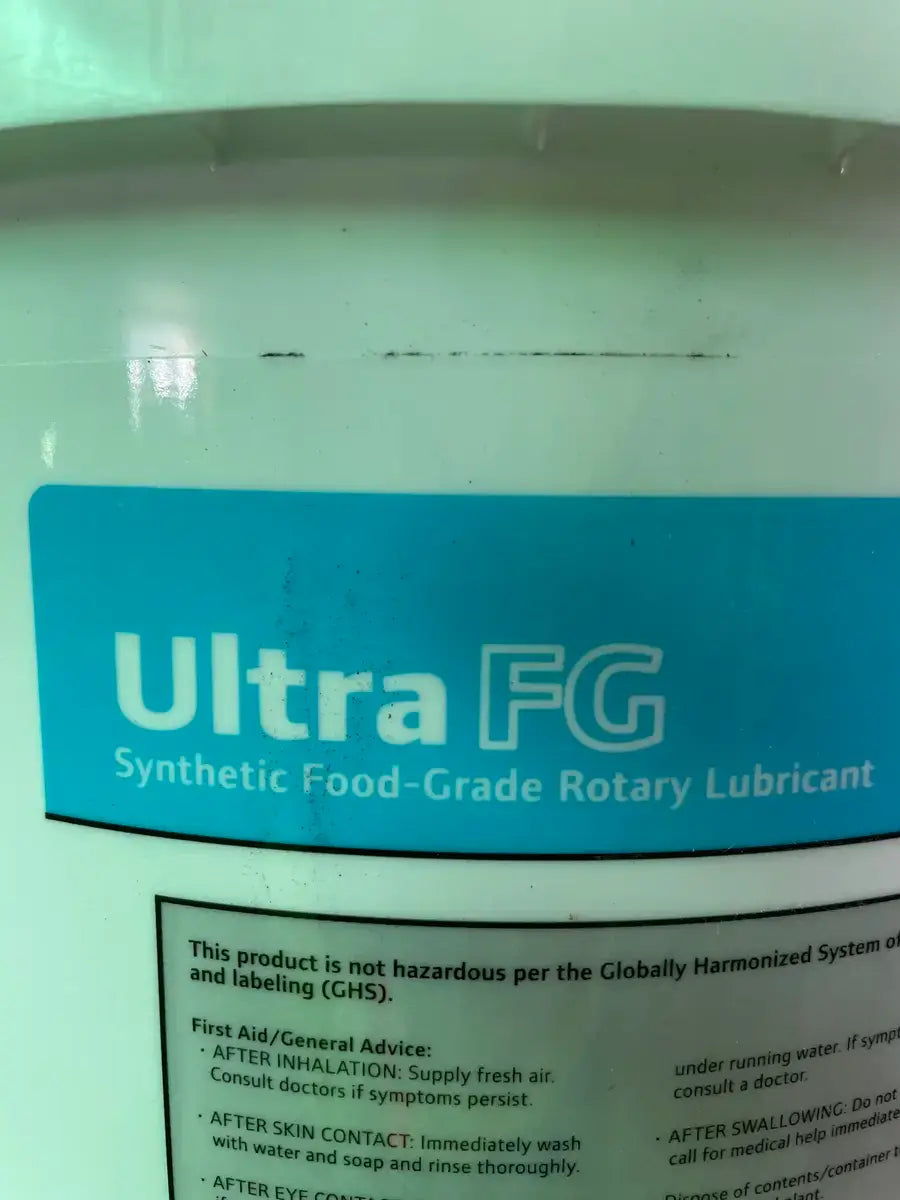 (2) 5 Gallon Food Grade Ultra FG Synthetic Lubricant.