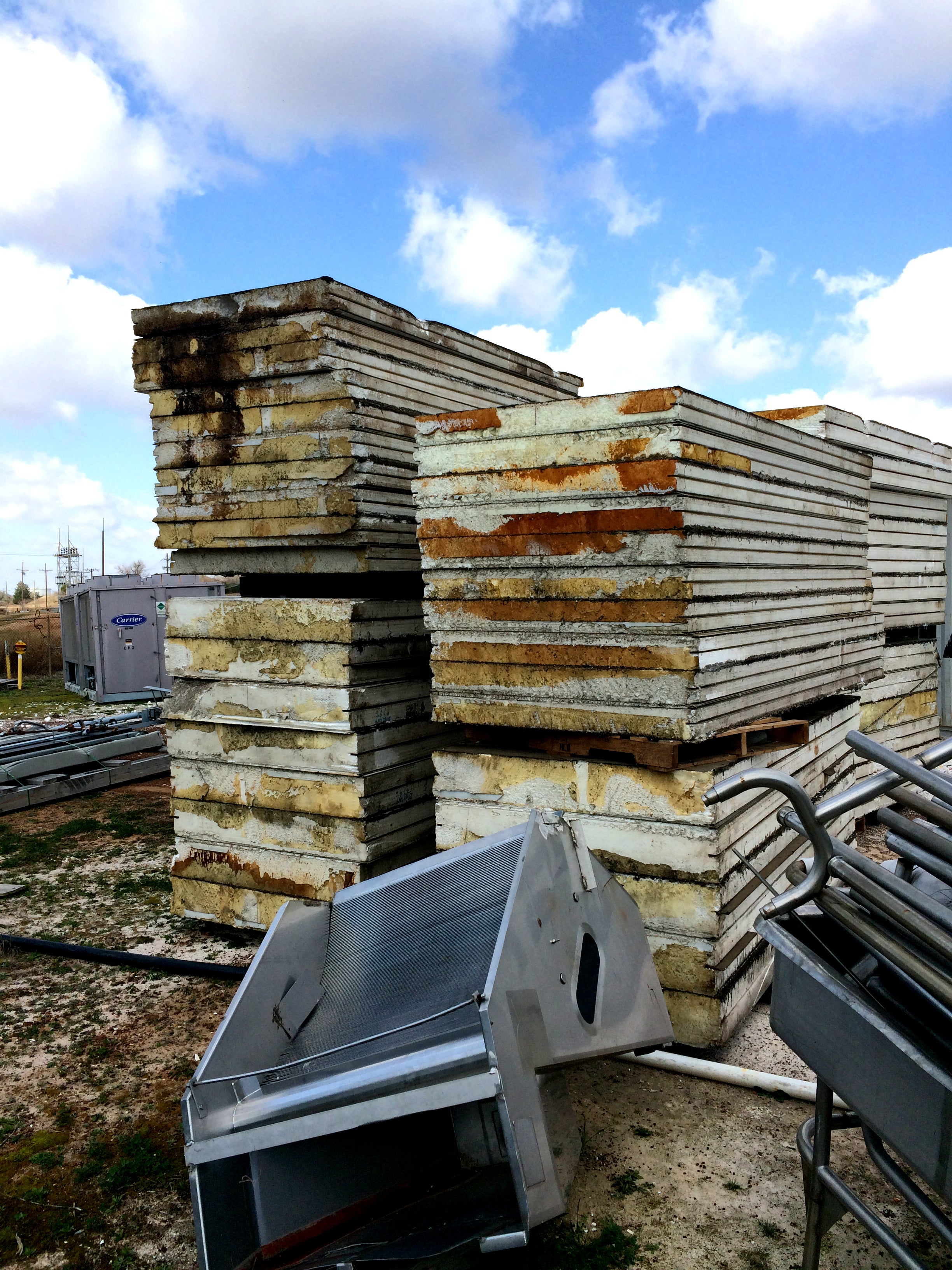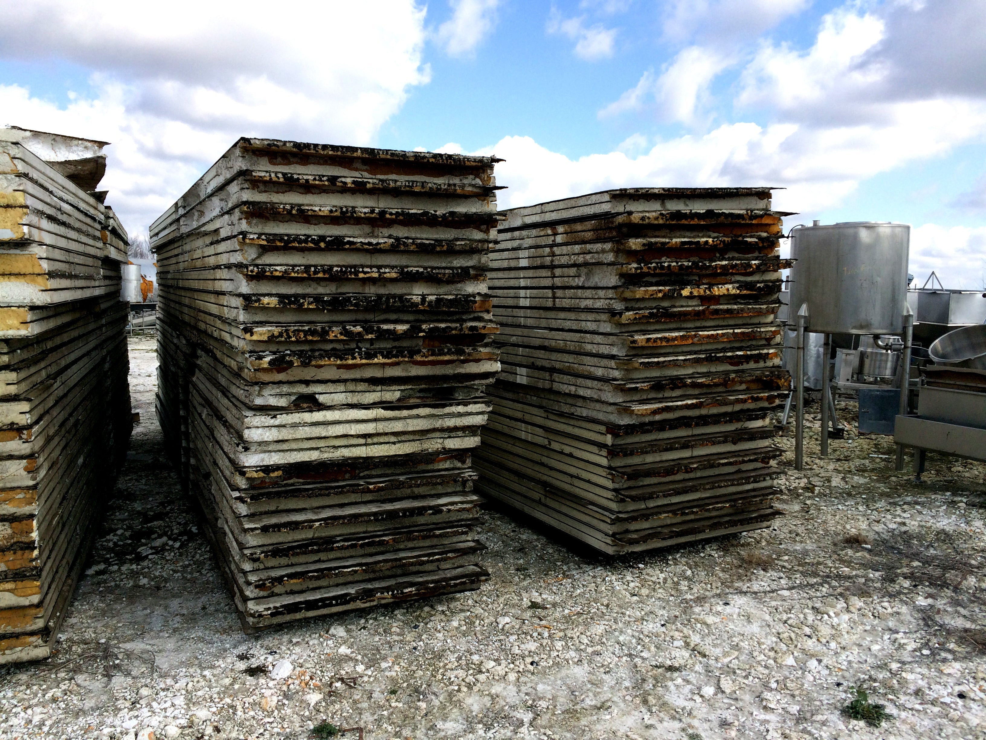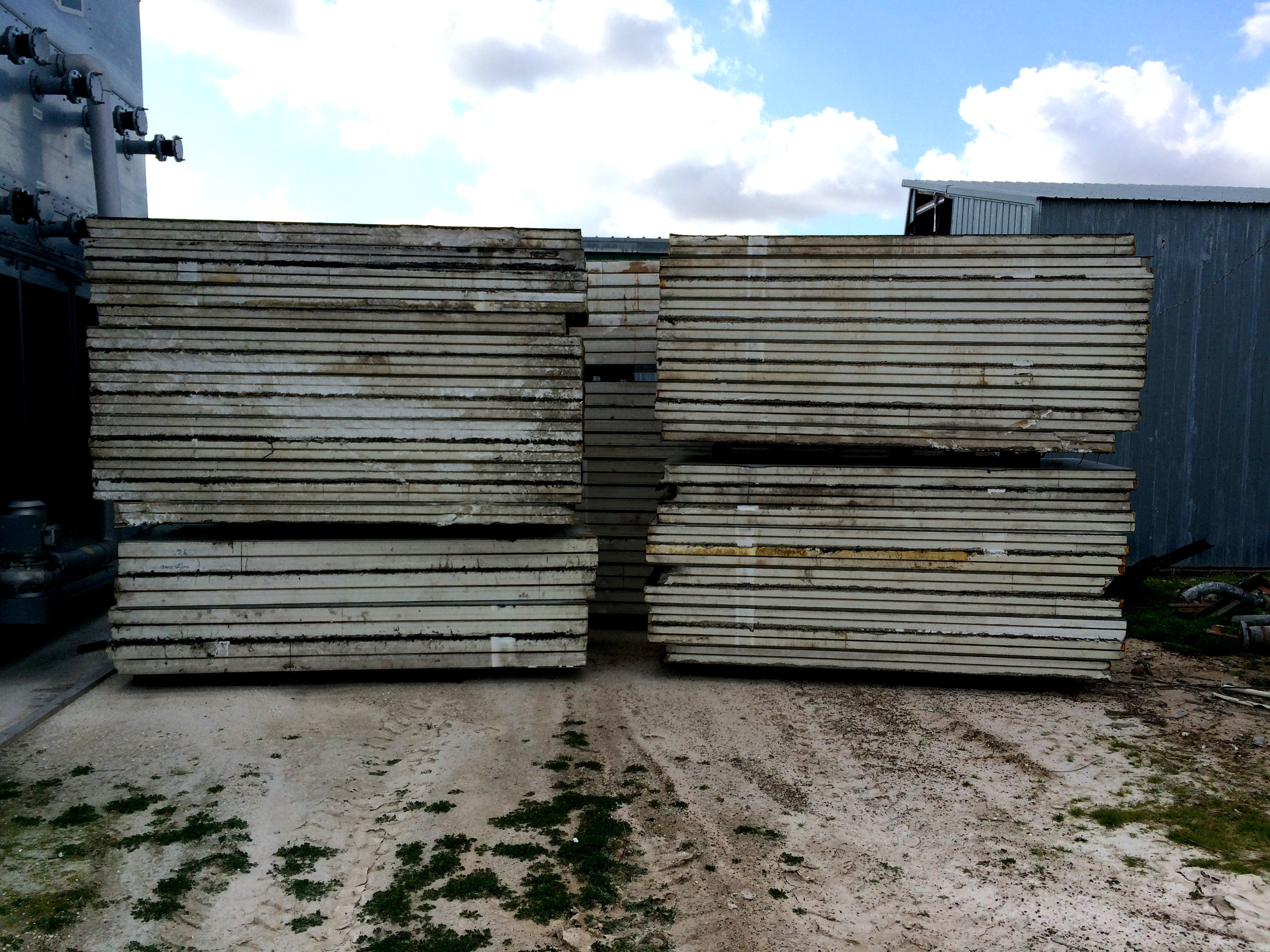 Insulated Cooler Panels for Walk-In, 100 x 100 ft x 20 ft. high room. Thickness: 5 in. and 8 in. Panel Width: 4 ft. Also have 8x12 insulated doors. White color metal sheathing inside and out. Panels are stored inside warehouse and inside cargo containers. Sizes are listed below: 91 -9'6 by 8 thick 10 - 10' by 5 thick 17 - 21 ' by 8 thick 2 - 22'4 by 5 thick 13- 20'7 by 8 thick 18-22-9 by 5 thick 18- 9'6 by 5 thick