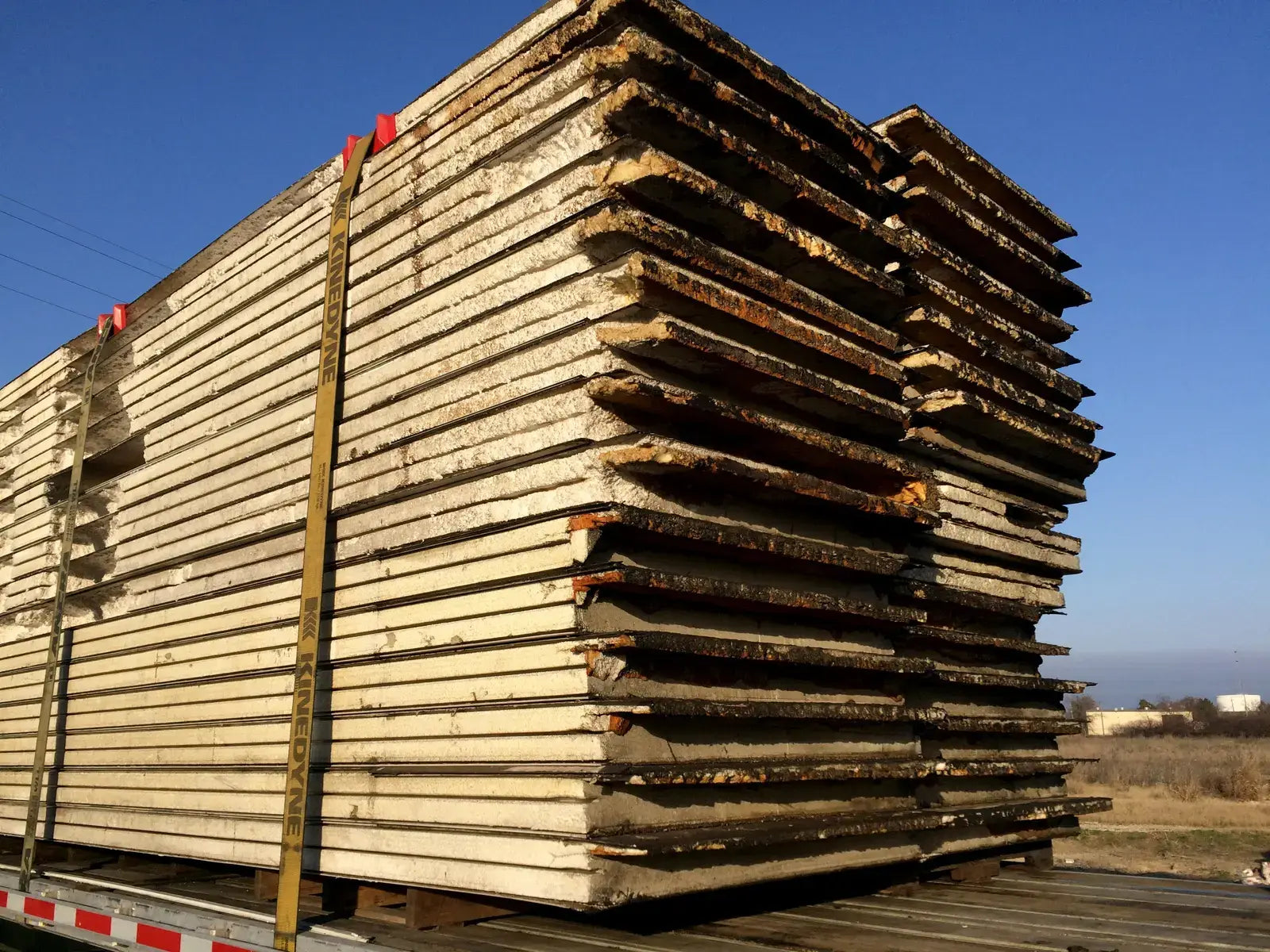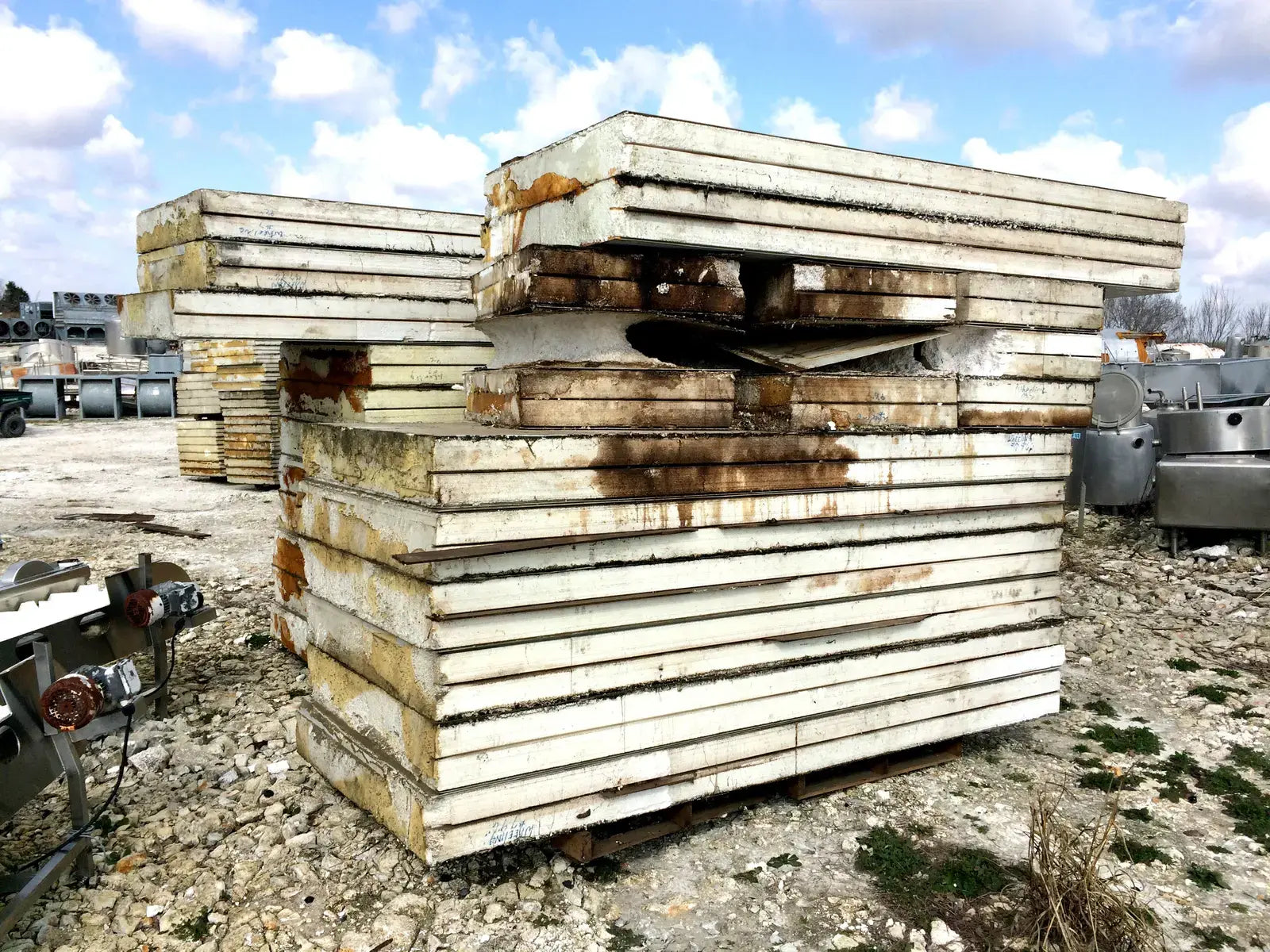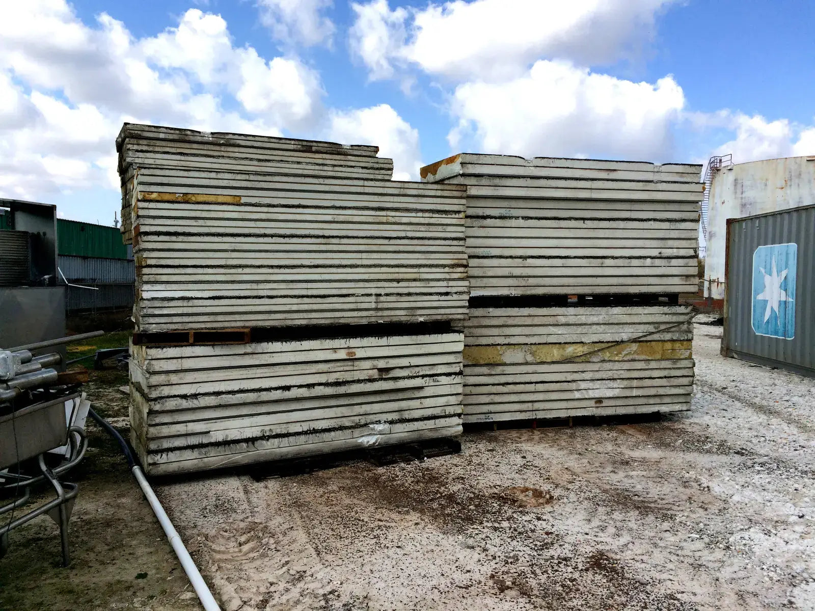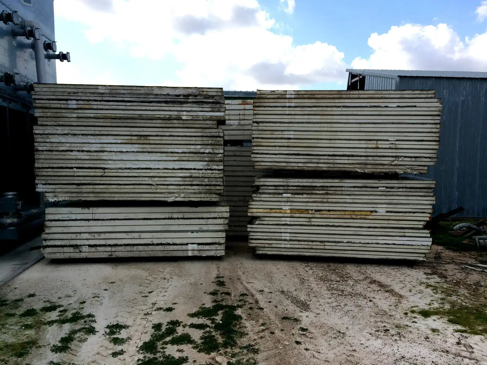 Insulated Cooler Panels for Walk-In, 100 x 100 ft x 20 ft. high room. Thickness: 8 in. Panel Width: 4 ft. Also have 8x12 insulated doors. White color metal sheathing inside and out. Panels are stored inside warehouse and inside cargo containers. Sizes are listed below: 91 -9'6 by 8 thick