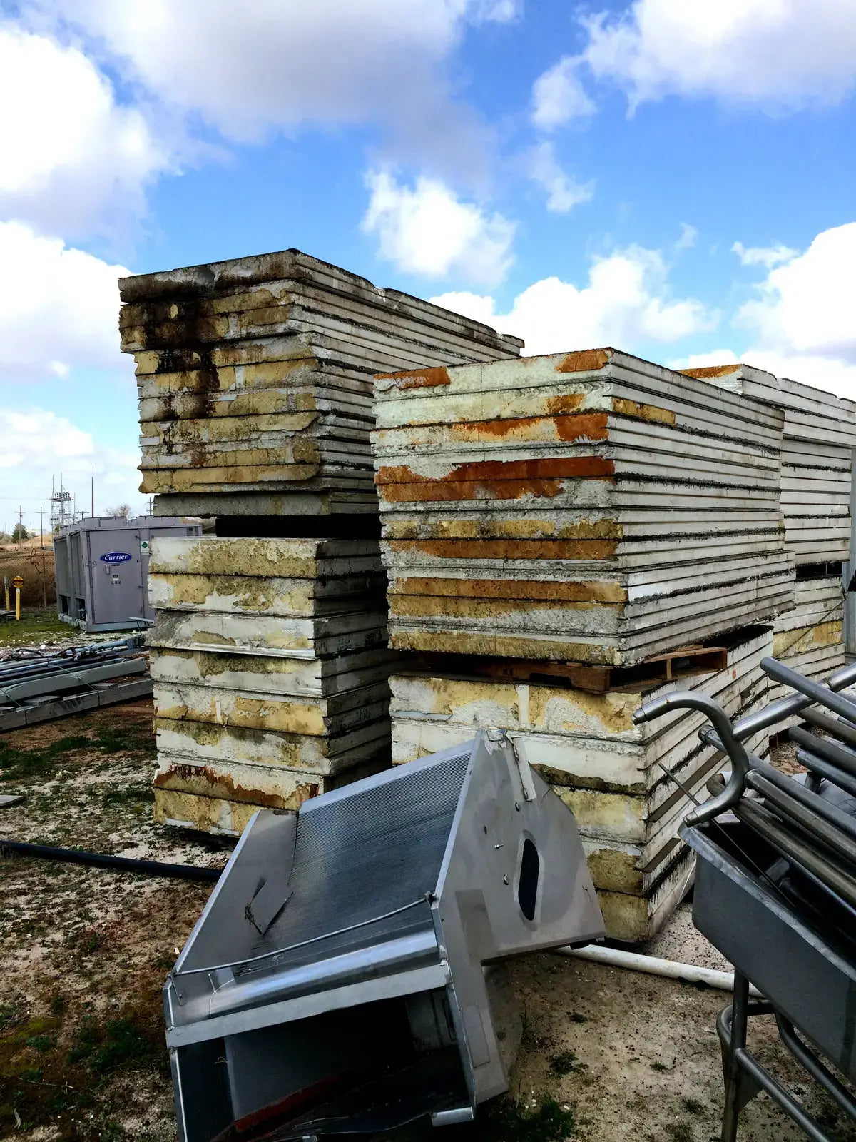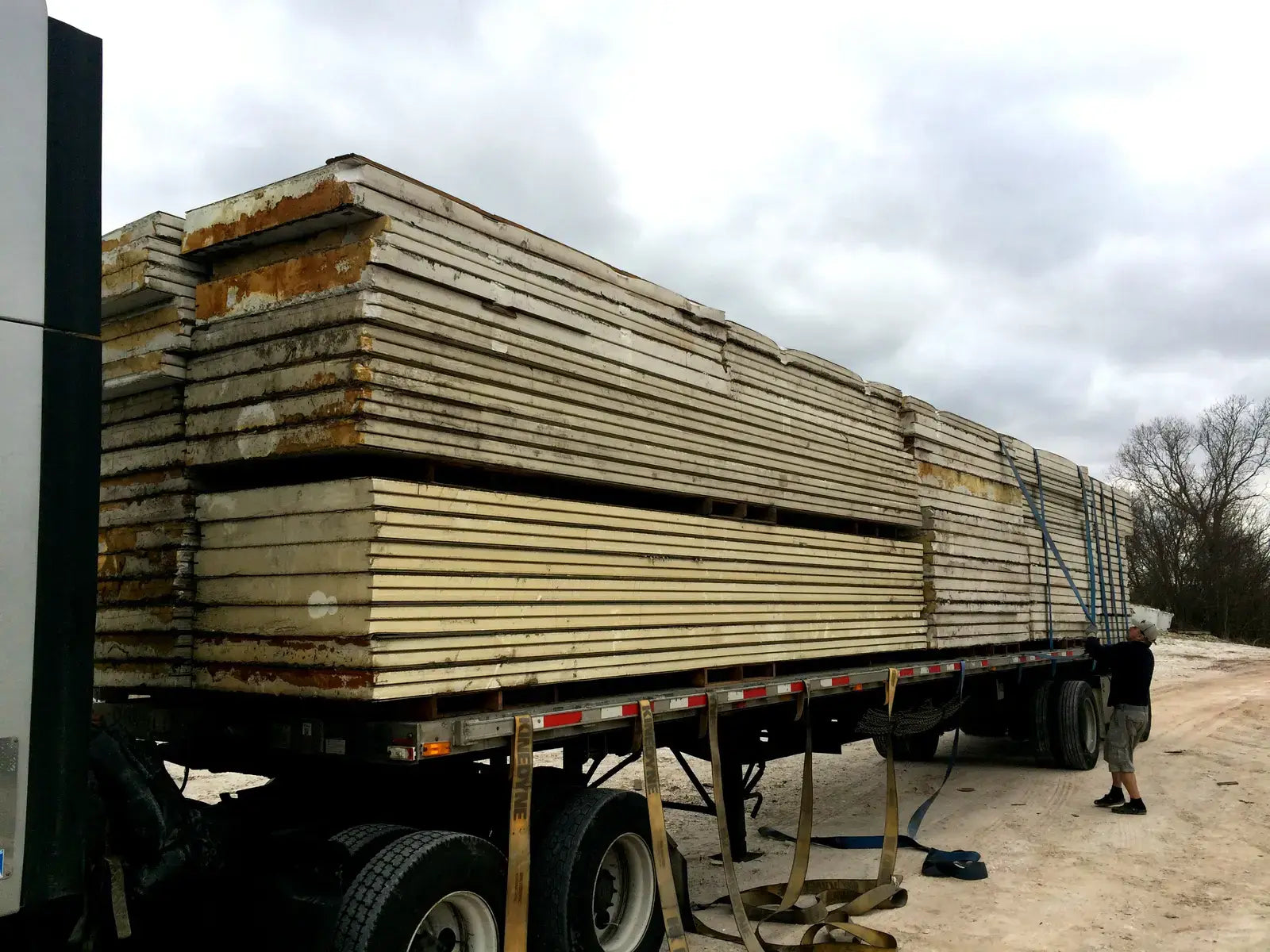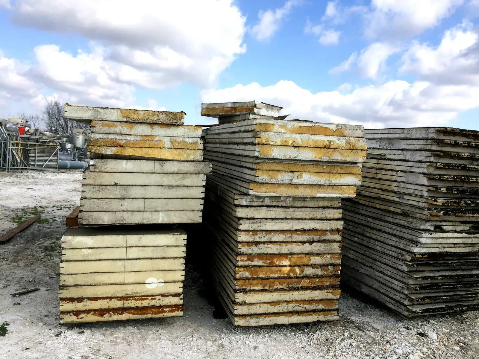 Insulated Cooler Panels for Walk-In, 100 x 100 ft x 20 ft. high room. Thickness: 5 in. Panel Width: 4 ft. Also have 8x12 insulated doors. White color metal sheathing inside and out. Panels are stored inside warehouse and inside cargo containers. Sizes are listed below: 2 - 22'4 by 5 thick