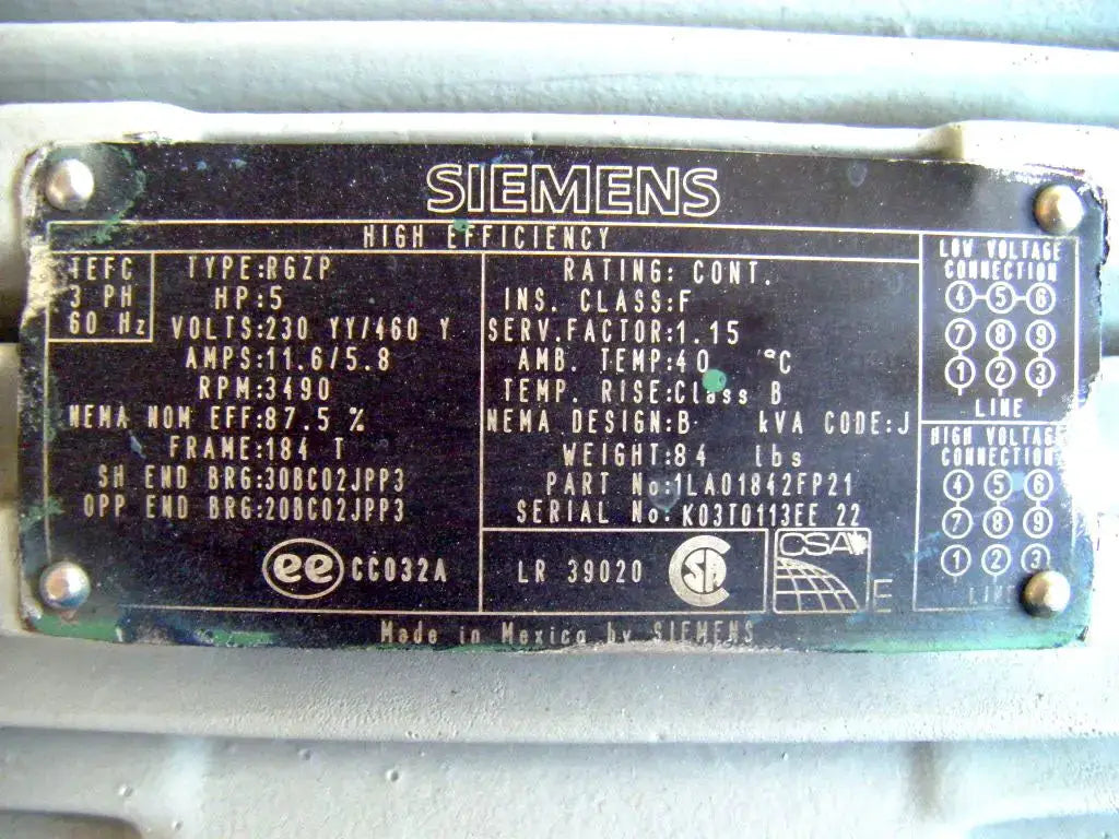 - Motor Manufacturer: SIEMENS