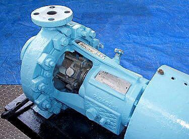 ITT A-C Centrifugal Pump. Model: 150. S/N: 811-42090-39-1. Impeller diameter: 6.38 in. General Electric Motor, 7.5 hp, 3515 rpm, 230/460 V, 19.8/9.9 amps, 60 Hz, 3 phase. Inlets: (1) 1-1/2 in. dia. flanged suction port. Outlets: (1) 1 in. dia. flanged discharge port. Overall dimensions: 41-1/2 in. L x 16 in. W x 18 in. H.