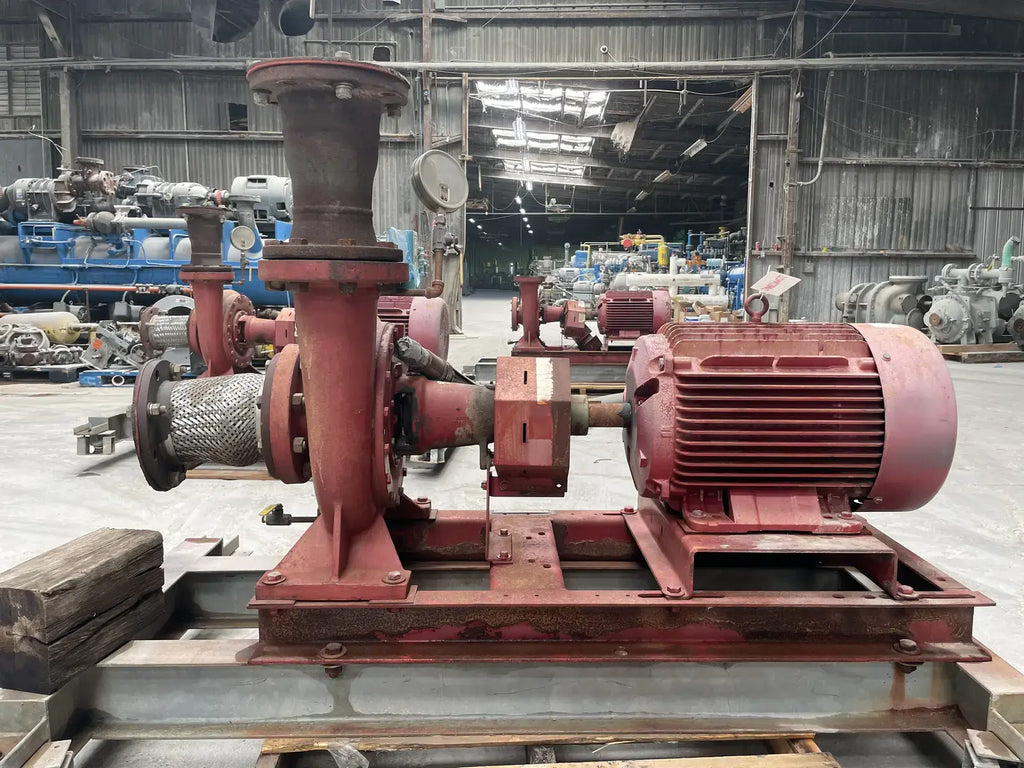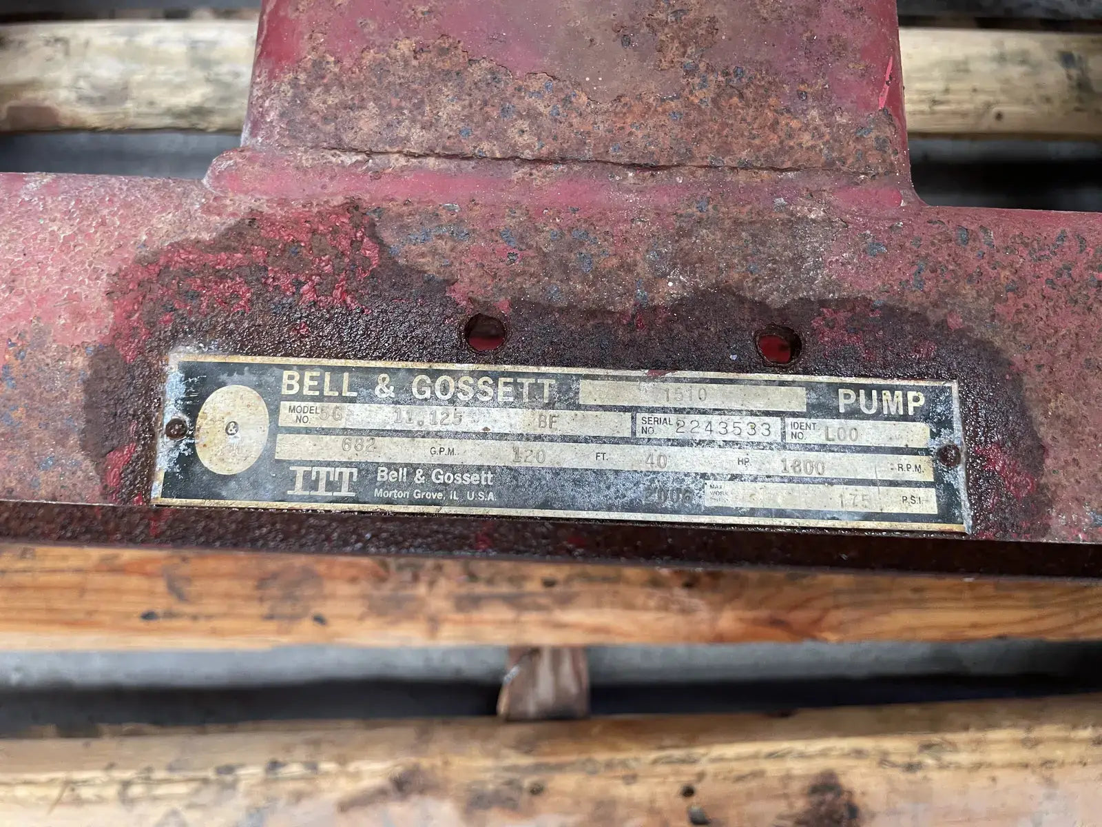 ITT Bell & Gossett 1510 Series Centrifugal Pumps. Model: 5G 11.125 BF. Rated capacity for new pump is 682 gpm with required horsepower. Maximum working pressure: 175 psi. U.S. Electric Motor, 40 hp. Inlets: (1) 6 in. dia. flanged suction port. Outlets: (1) 5 in. dia. flanged discharge port. Overall dimensions: 6 ft. 1 in. L x 3 ft. 8-1/2 in. W x 4 ft. 2 in. H.