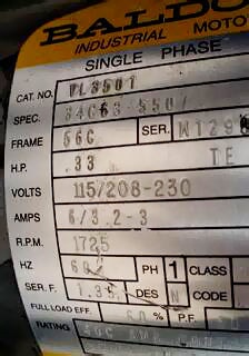 - Motor Manufacturer: Baldor