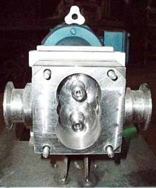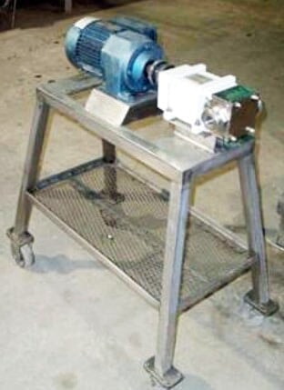 Jabsco Positive Displacement Lobe Gear Pump. Model: 24950-1870. S/N: 7719. SEW Eurodrive, 1/3 hp, 3300 rpm, 230/460 V, 2.8/1.41, 60 Hz, 3 phase. Eurodrive, Rpm out: 216 (final). Inlets/outlets: (2) 1 in. dia. S-line fittings. Overall dimensions: 2 ft. 5 in. L x 1 ft. 4 in. W x 2 ft. 10 in. H.