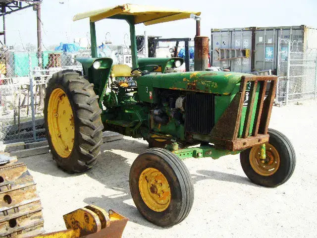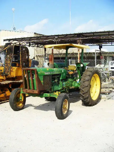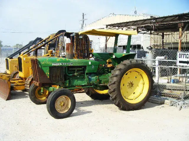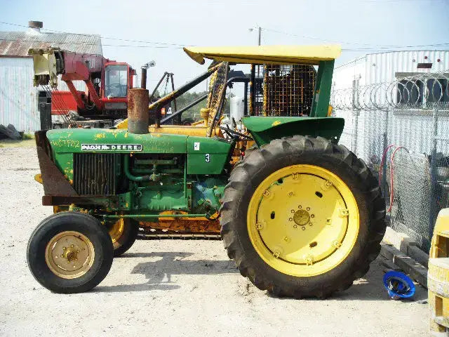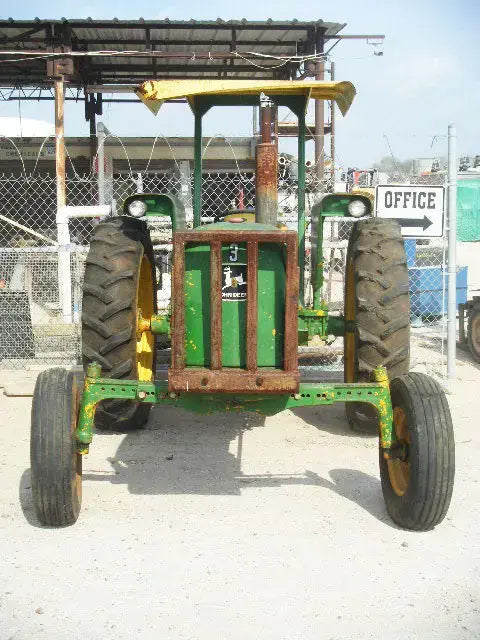 John Deere tractor. Model: 401 BG. S/N: 274351T. Gasoline 4 cylinder engine. Back tire size: 13.6-38 on 12 in. rim 12-38, Air fill. Front Tires size: 7.50 - 16SL 6 ply , air fill. Overall dimensions: 10 ft. 3 in. L x 7 ft. W x 7 ft. 7 in. H.(ACN135).