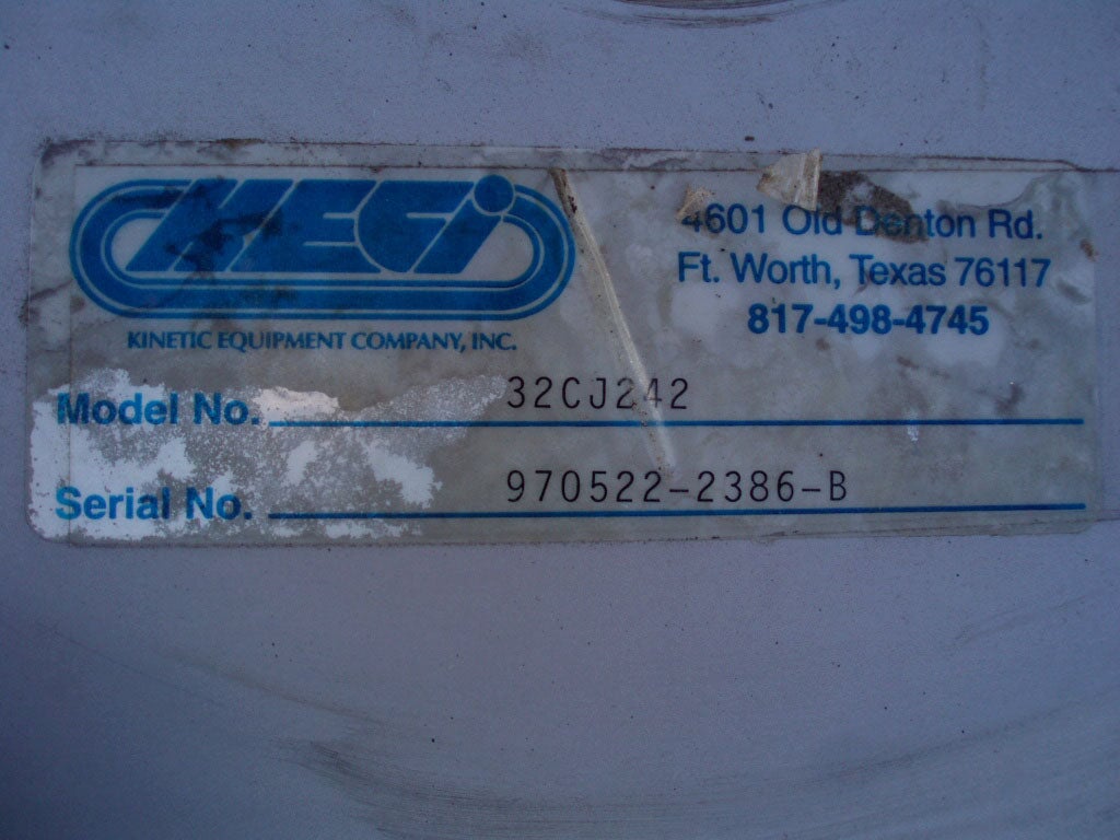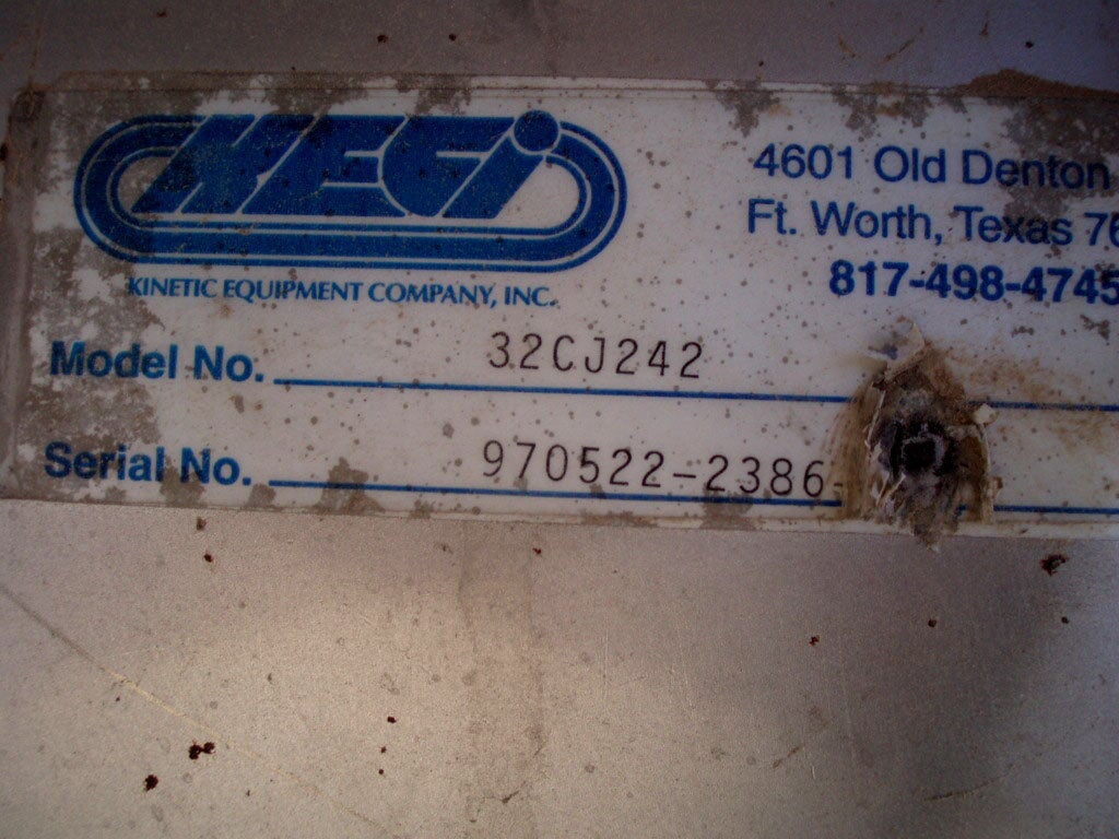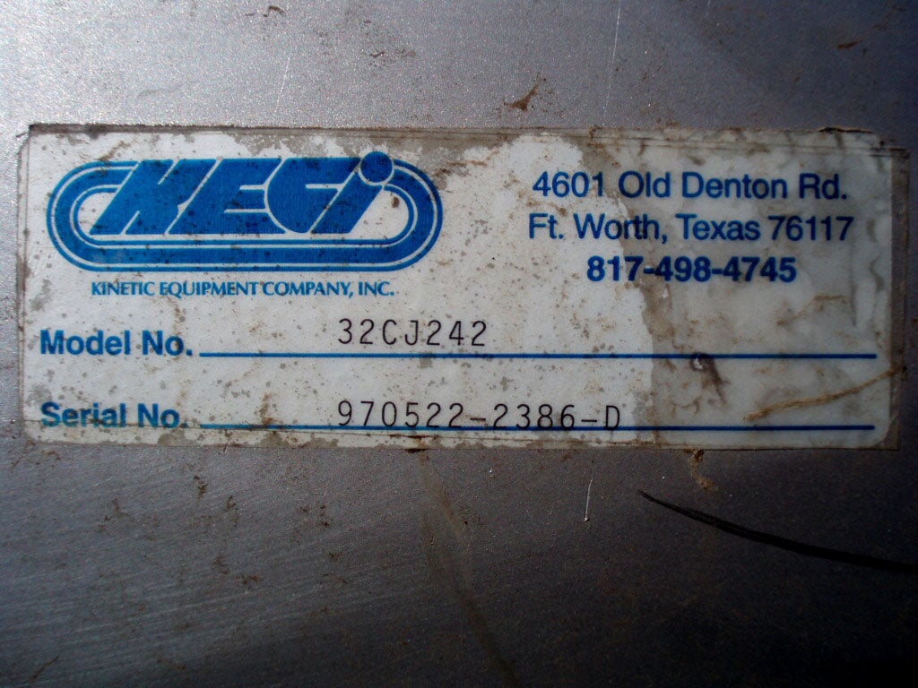 KECI Stainless Steel Fan - .75 HP. Kinetic Equipment Co., Inc. Model: 32JC242. S/N: 970522-2386-B, 970522-2386-D, 970522-2386-G, 970522-2386-. Fan dia.: 2 ft. 1 in. Baldor electric Motor - .75 HP. 1725 rpm, 208-230/460 V, 2.3-2.2/1.1 amps. 60 Hz, 3 phase. Overall dimensions: 3 ft. 6 in. L x 1 ft. 2 in. W x 2 ft. 11 in. H