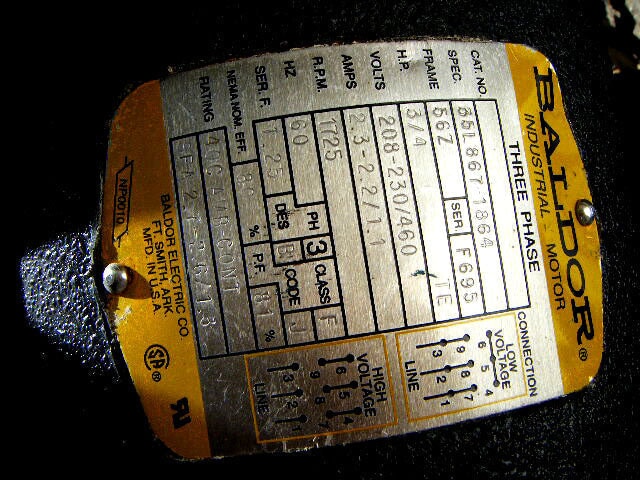 - Motor Manufacturer: Baldor