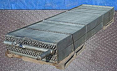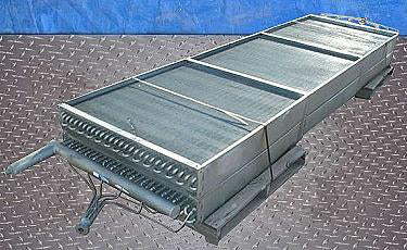 King Air Systems Direct Expansion Evaporators- 10 Ton. Model: 5DXR. S/N's: 03-09063A-04 Units are bolted together. Design pressure: 250 psi @ 400 °F. MAWP: 250 psi @ 400 °F. Refrigerant: Ammonia. Inlets: (6) Fins per inch. (84) Ammonia tubes (each evaporator). Inlets: (1) 3/4 in. dia. port. Outlets: (1) 3/4 in. dia. FNPT fitting. Overall dimensions: 11 ft. 10 in. L x 7 in. W x 3 ft. 7 in. H.(H15).