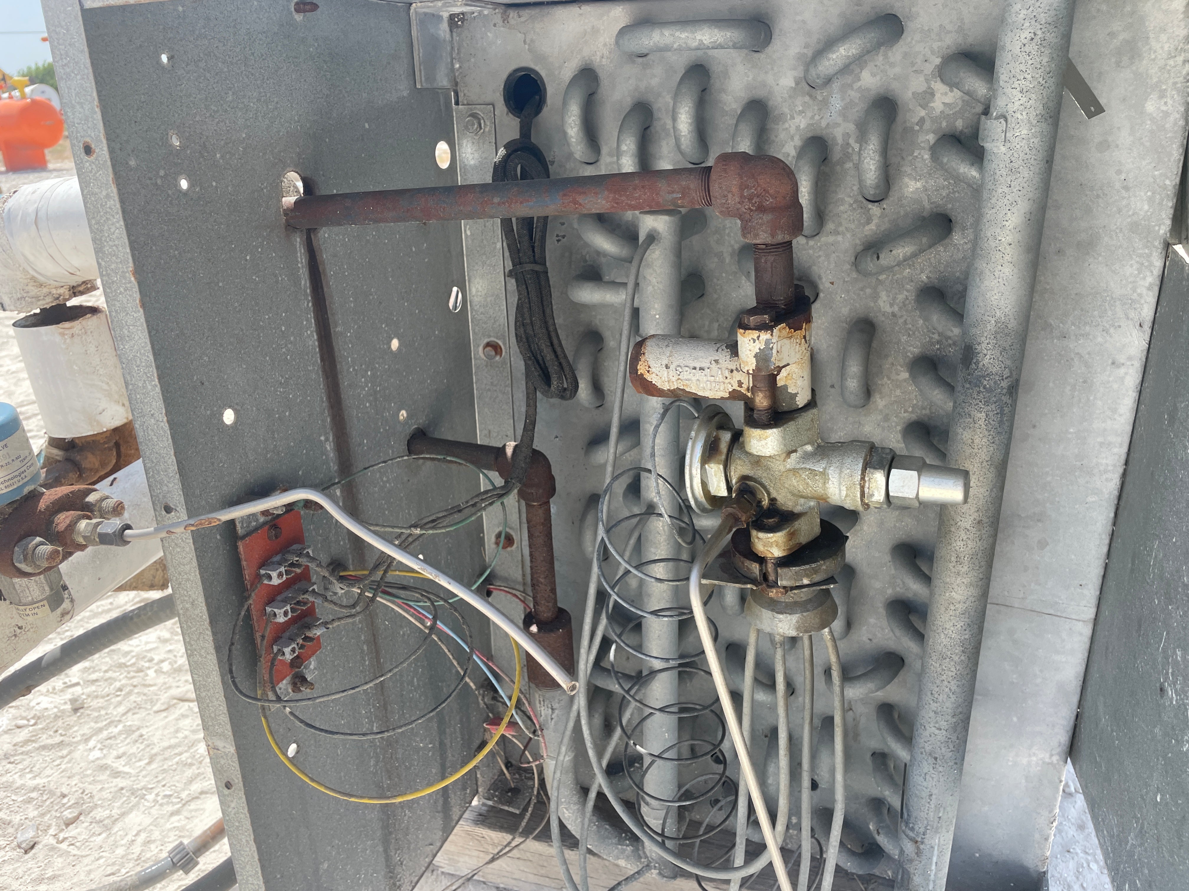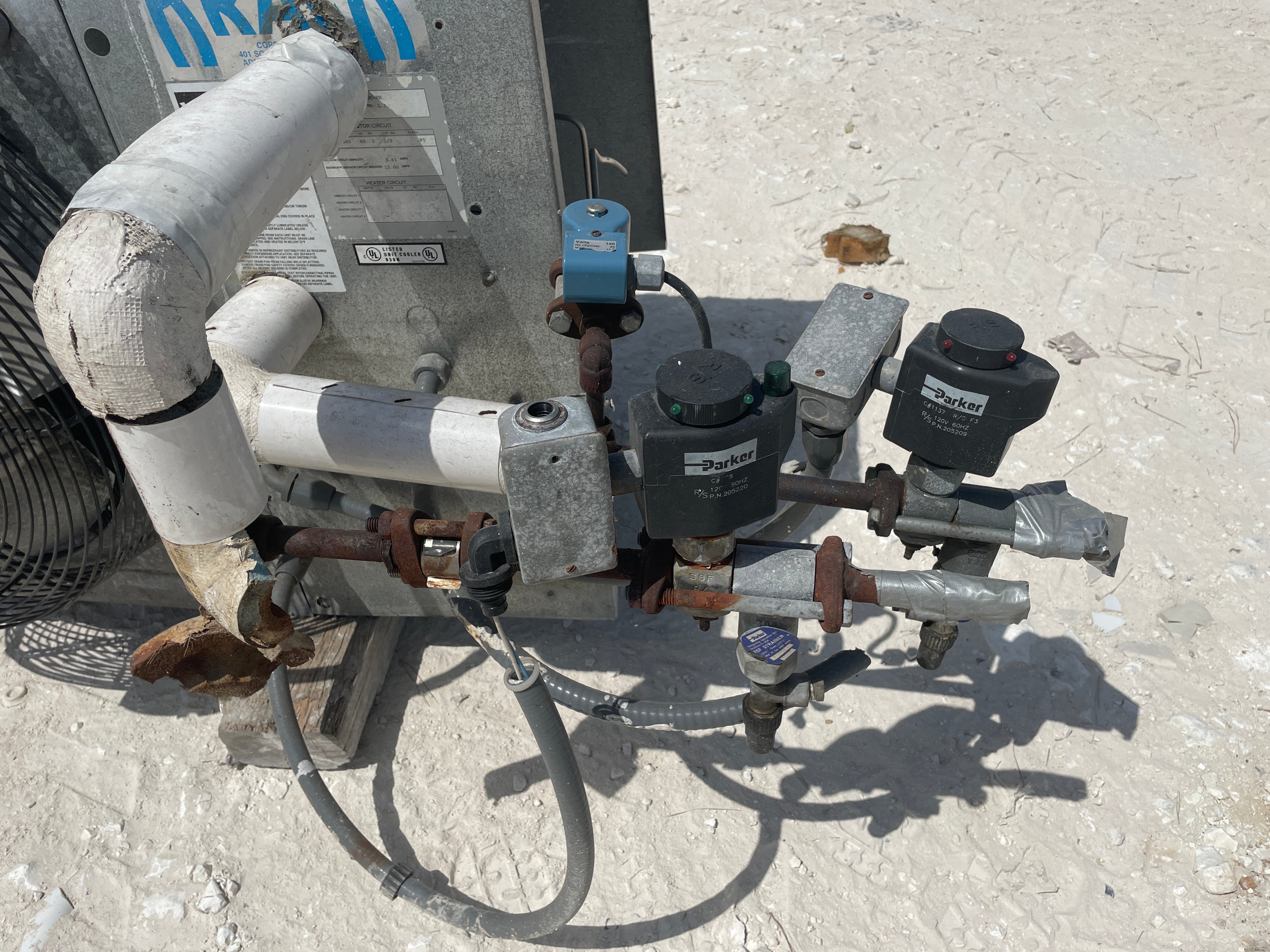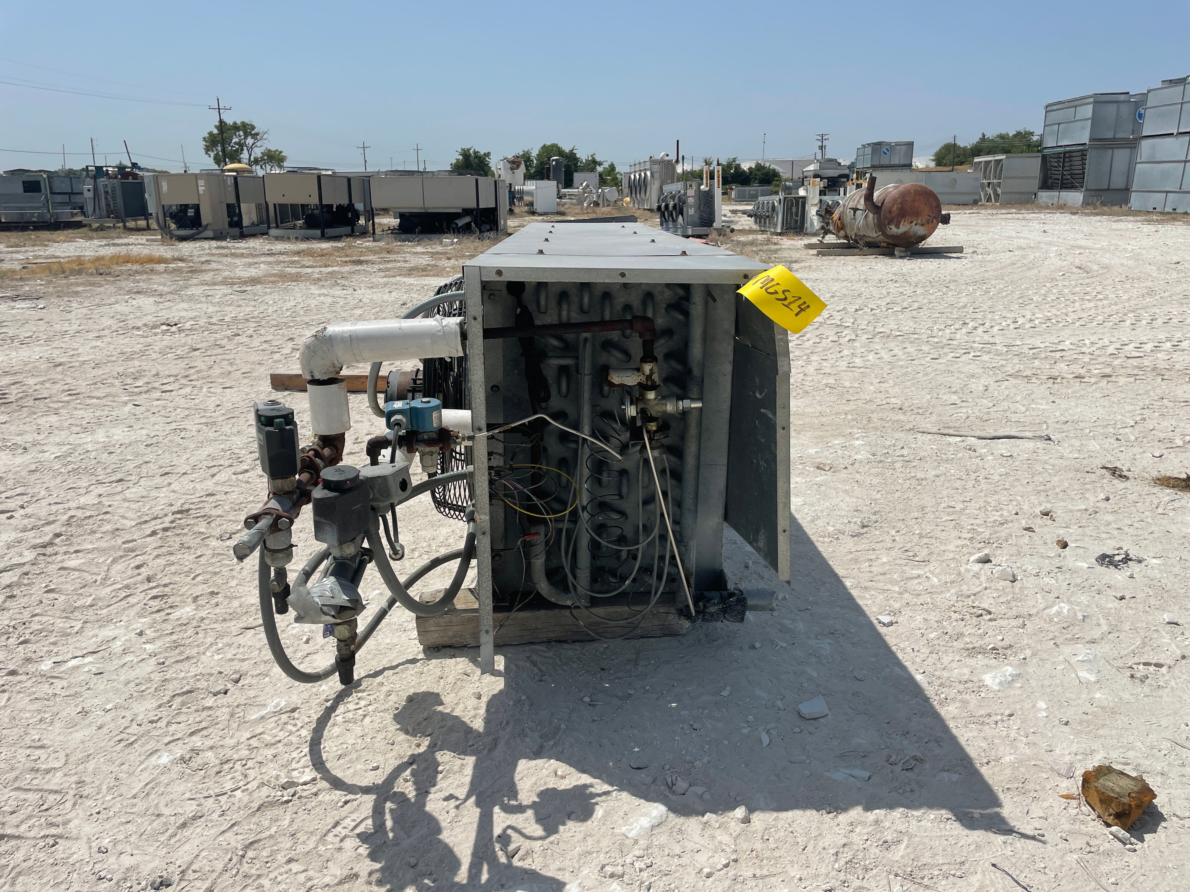Krack DT4S-925-DXA-HGC-LH Ammonia Evaporator Coil- 10.69 TR 4 Fans (Low/Medium Temperature) This unit has compatibility with either low or medium temperature coils. This allows you to run the Evaporator with Wet or Frosted coils(TR) @15TD. A wet capacity of 8555 (BTUH / °F TD) with an estimated tonnage of 10.69375 (TR) @15TD. A frosted capacity of 7700 (BTUH / °F TD) and an estimated tonnage of 10(TR) @15TD. An Air Flow coming in at 13800 CFM with a face velocity of 601FPM. Direct expansion top fed coils with a gas defrost system. The previous refrigerant was Ammonia. 4 1HP motors are included with the unit.