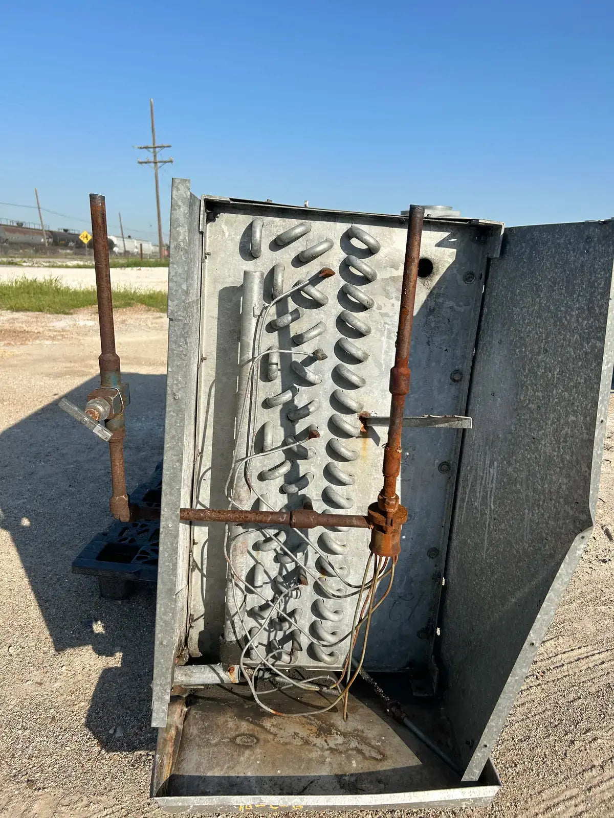 Krack DT Series Ammonia Evaporator Coil. Model: DTX3S-720-DXA-A-LH. Serial No:427551-01D. Design Pressure: 302. Refrigerant: R-717(Ammonia). CFM: 13,800. Fins Per Inch: 3.