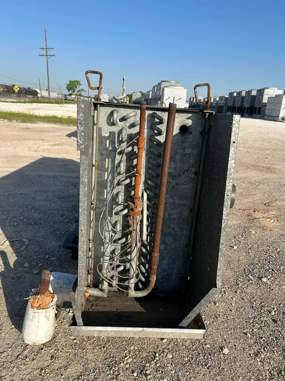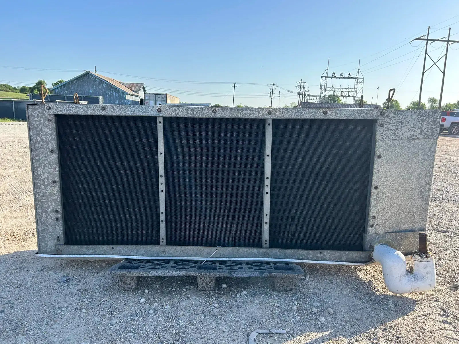 Krack DT Series Ammonia Evaporator Coil. Model: DTX3S-810-DXA-HGC-LH. Serial: 427551-05B. Refrigerant: R-717 (Ammonia). Design Pressure: 302 PSIG. CFM: 15,000. Fin Per Inch: 4.