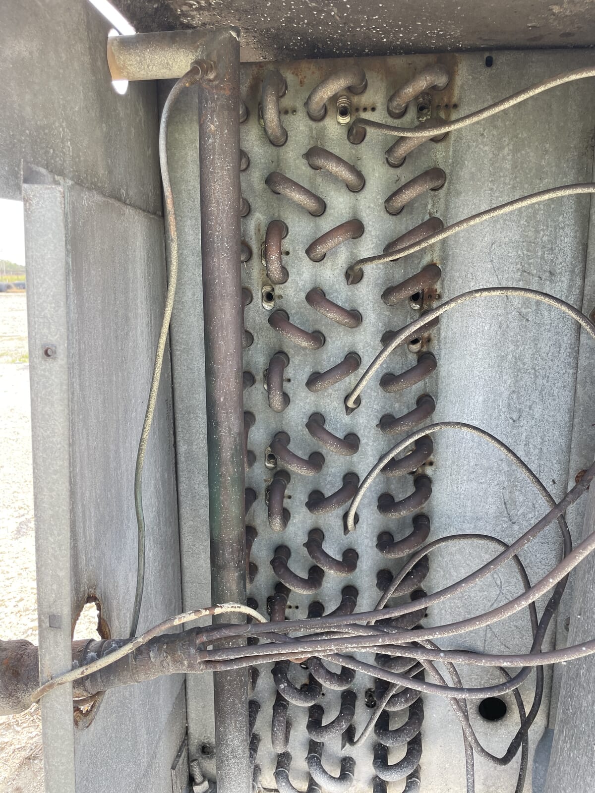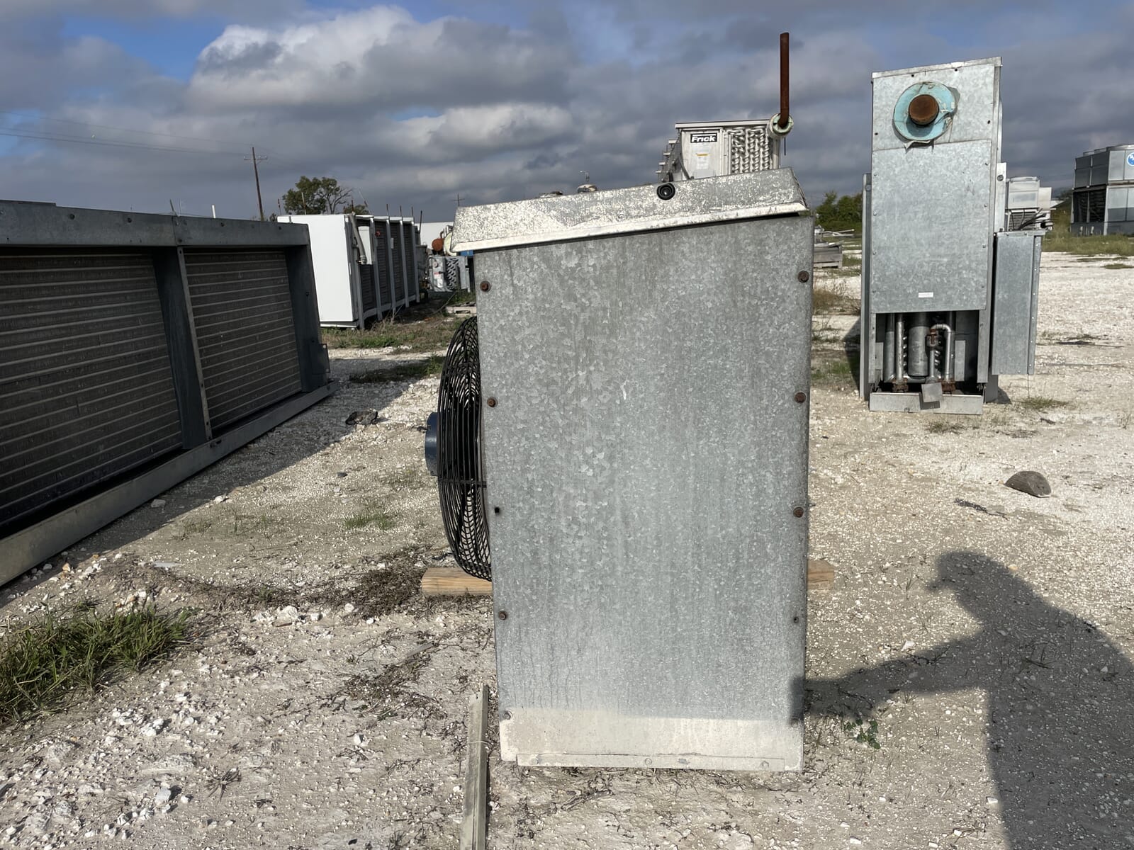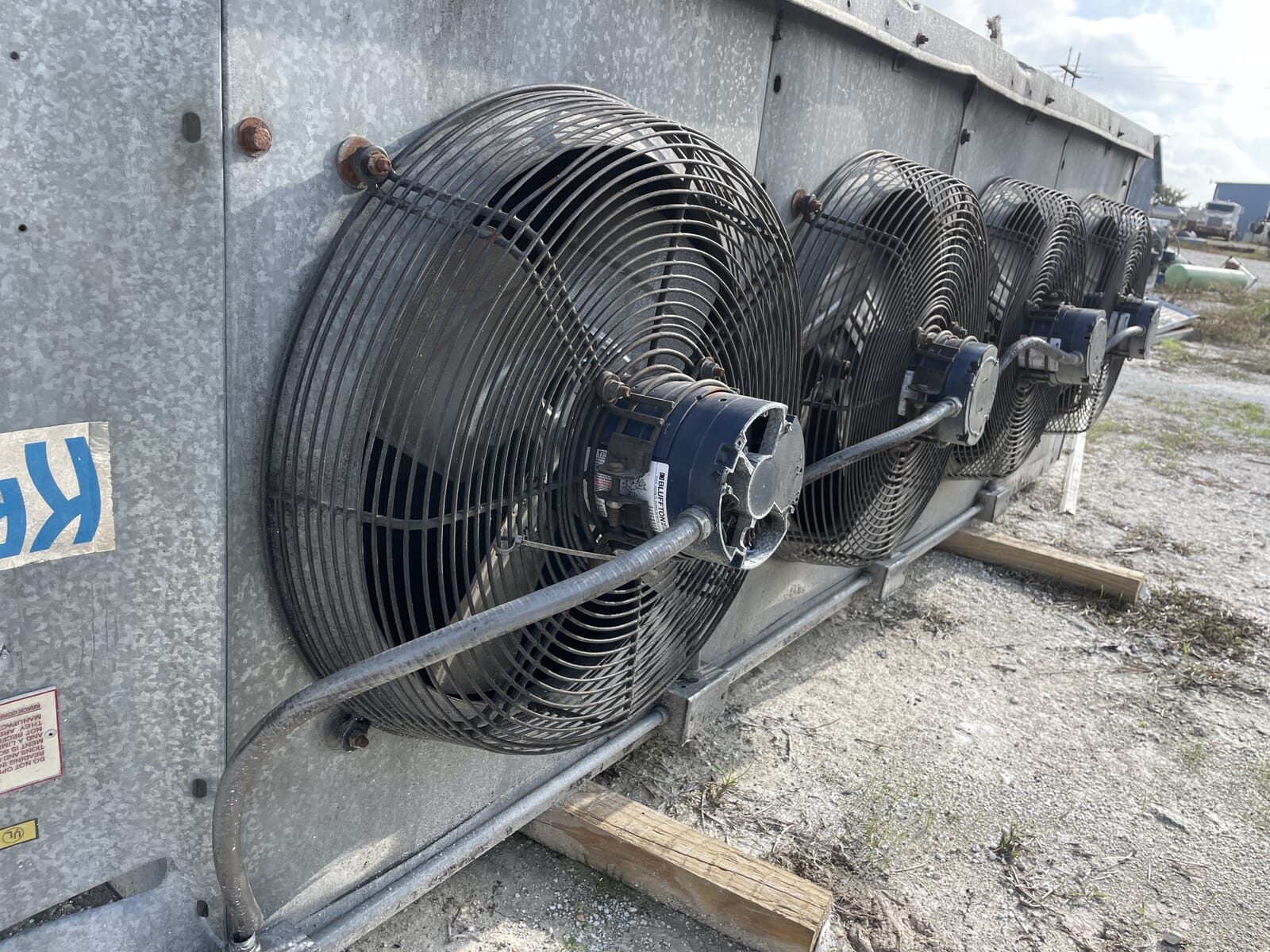 Krack DTX4C-1020-HGC-DXF Freon Evaporator Coil- 10.5875 Ton, 4 Fans (Low/Medium Temperature) This evaporator runs with Wet OR Frosted Low Temperature Coils. It has a capacity of 8470 (BTUH / °F TD) with an estimated tonnage of 10.5875 (TR) @15TD. An Air Flow of 18000 CFM and a face velocity of 606 FPM. It has Recirculated Top fed coils with a Gas defrost system. It previous ran on Halocarbon (Freon | R22). Included are 4 HP fan motors.