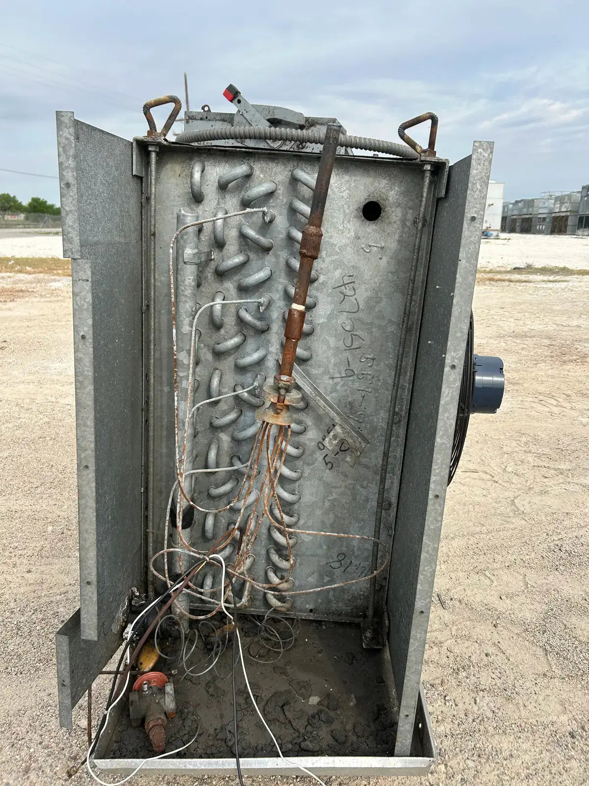 Krack DT Series Ammonia Evaporator Coil. Model: DTX4S-960-DXA-A-LH. Serial No: 42551-09-B. Design Pressure: 302 PSI. Refrigerant: R-717(Ammonia). Fins Per Inch: 3. CFM: 18400.