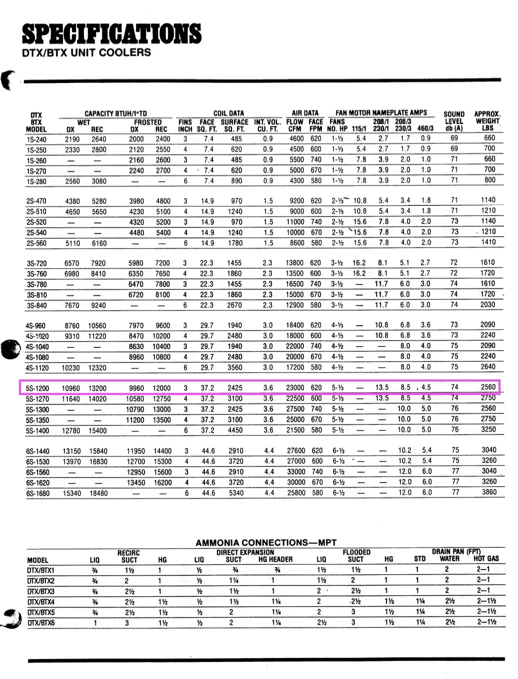 - Frosted Capacity (BTUH/ °F TD): 9,960