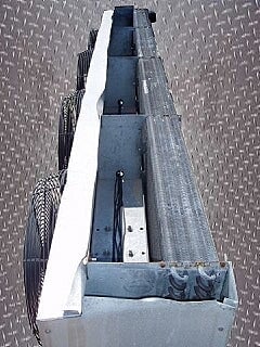 (2) 1995 Krack Evaporators- 4 Ton (each). Model: MK44-484A-230. S/N's: 451424-01A and 451424-01B. Refrigerant: R-12, R-22, R-502. Capacity: 48,400 Btuh @ 10 °F TD. Design pressure: 300 psig. Airflow: 11,840 cfm. (4) fins per inch. Unit for use in walk-in coolers or refrigerated warehouses. Krack MK series coolers are designed for rooms that need lower velocity air-flow to avoid throwing water, or require less air volume. For medium temperature rooms. Air defrost. (4) 19 in. dia. fans. Inlets: (1) 1-5/8 in. dia. copper pipe. Outlets: (1) 5/8 in. dia. copper pipe. Overall dimensions: 10 ft. 7 in. L x 26 in. W x 26-1/2 in. H.(ACN25).