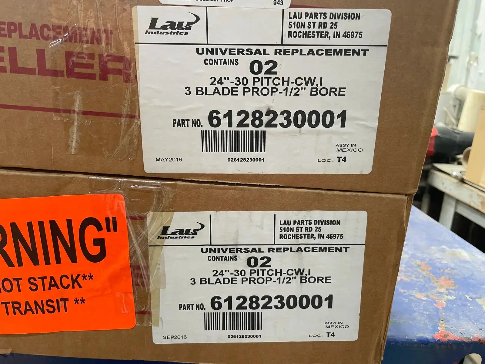 LAU Industries Fan Blade. Part No: 612830001. Fan Blade. 24"- 30 Pitch-CW. 3 Blade Prop-1/2" Bore.