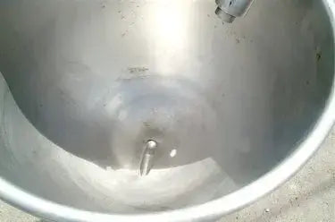 Legion Steam Kettle- 40 Gallon. Model LP 40. S/N 60971. MAWP: 45 psi. Inner dimensions: 25-1/2 in. dia. x 22 in. H. Stainless steel cover. Jacket connections: 1 in. Outlet: 1-1/4 in. with stainless steel valve. Pneumatic agitator; less blades. Dimensions: 45 in. dia. x 58 in. H.