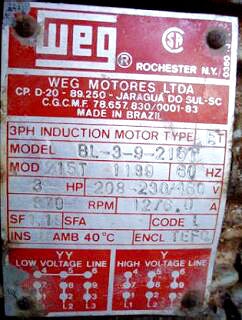 Lightnin Mixer Right Angle Heavy Duty Series. Model: 216-TECDS-3.2. SN: 87/584270. 304 Stainless Steel Shaft. WEG motor, 3 hp, 870 rpm, 230/460 V, 12.0/6.0 amps. 60 Hz, 3 phase. Oil capacity: 6 qts. Gear reducer ratio: 14.0, 125 rpm (final). Features a right angle design, lubricated speed reducer. Overall dimensions: 3 ft. 5 in. L x 1 ft. 5 in. W x 4 ft. 3 in. H.