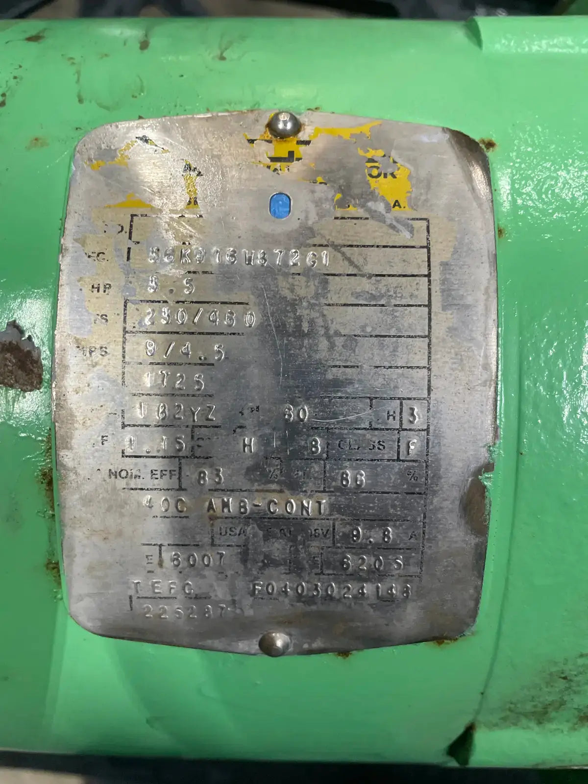 Lightnin Mixer Fixed-Mount SXJS Side-Entering Mixer. Model: SXJS-174. S/N: R04380177-01. Baldor Industrial Motor, 3-1/2 hp, 1725 rpm, 230/460 V, 9/4.5 amps, 60 Hz, 3 phase. The fixed-mount design of the SXJS side-entering mixer accommodates applications lacking space for top entering mixers and those that require extra-long shafts. Features include motors and shafts coupled directly with pilot and keyway for accurate alignment and positive connections, welded, rigid coupling to add stability on longer shafts and positive chucks to grip the mixer shaft thus preventing unintentional shaft release. Standard on the SXJS are shock mounts that protect the drive against high fluid forces. Overall dimensions: 1 ft. L x 11 in. W x 2 ft. 11 in. H. (ACN96).