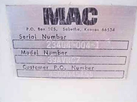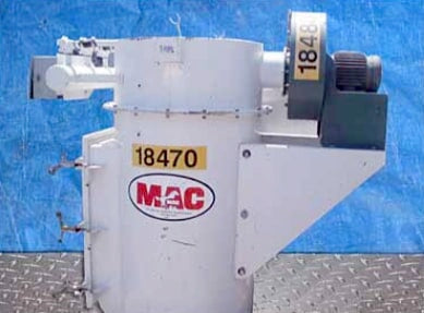 MAC Air Vent Round Filter Receiver. Model: 39AVRC7. S/N: 23404-004-1. Style: II. Customer P.O. No: 4500045155. Inside straight-wall dimensions: 2 ft. 4 in. dia. x 4 ft. H. Carbon steel construction. Number of cartridges: 7. Cartridge length: 3 ft. 3 in. Filter media: 252 sq. ft. with an air to media ratio of 2.3:1 @ 3.3 cfm. Baldor Electric Motor, 2 hp, 3450 rpm, 20/460 V, 5.2/2.6 amps, 60 Hz, 3 phase. New York Blower Co. Blower, Shop No: V01337, Size: 116 UNIV. The MAC Air Vent Round (AVRC) Filter Receiver is designed to receive product from a vacuum or pressure system. Filter cartridges are removed from the bottom. Overall dimensions: 5 ft. 7 in. L x 2 ft. 8 in. W x 5 ft. 7-1/2 in. H. (ACN76)