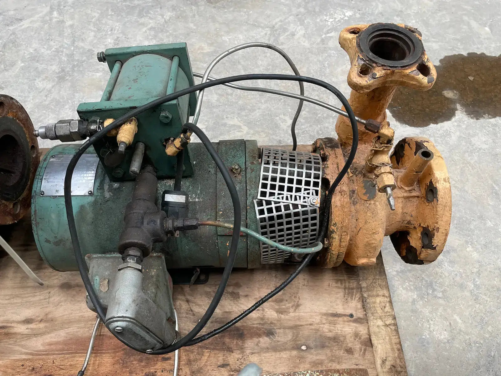 Magnetek E-Plus Ammonia Centrifugal Pump.Model: E-Plus Pump Motor, Serial: 6-360332-41. Discharge(in): 2. Suction(in): 4. Min Flow: 25 GPM, Max Flow: 140 GPM, Max Speed(RPM): 1800. Standard Cast Iron Material. Missing pump data plate.