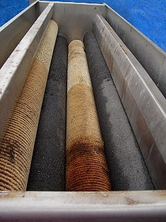 Magnuson Corporation Peeler. Model: 2WSP 2046. (2) Abrasive rolls: 6 in. dia x 70 in. L. (2) Brush rolls: 6 in. dia x 70 in. L. Lincoln Motor: 7.5 hp, 1745 rpm, 230/460 V. Hydraulic pump.(ACN202)