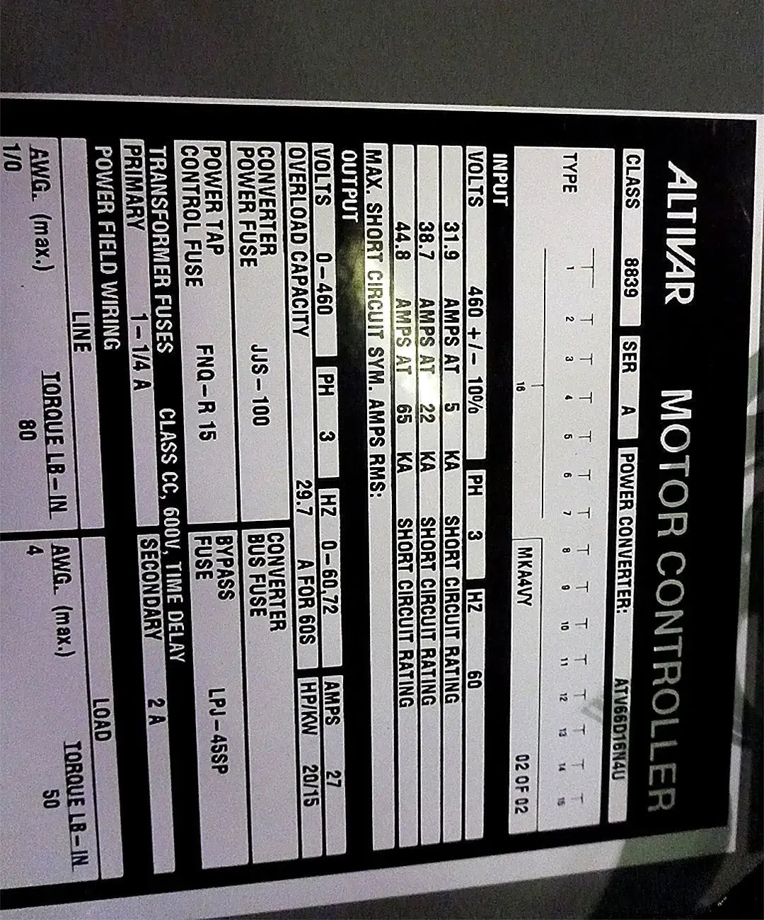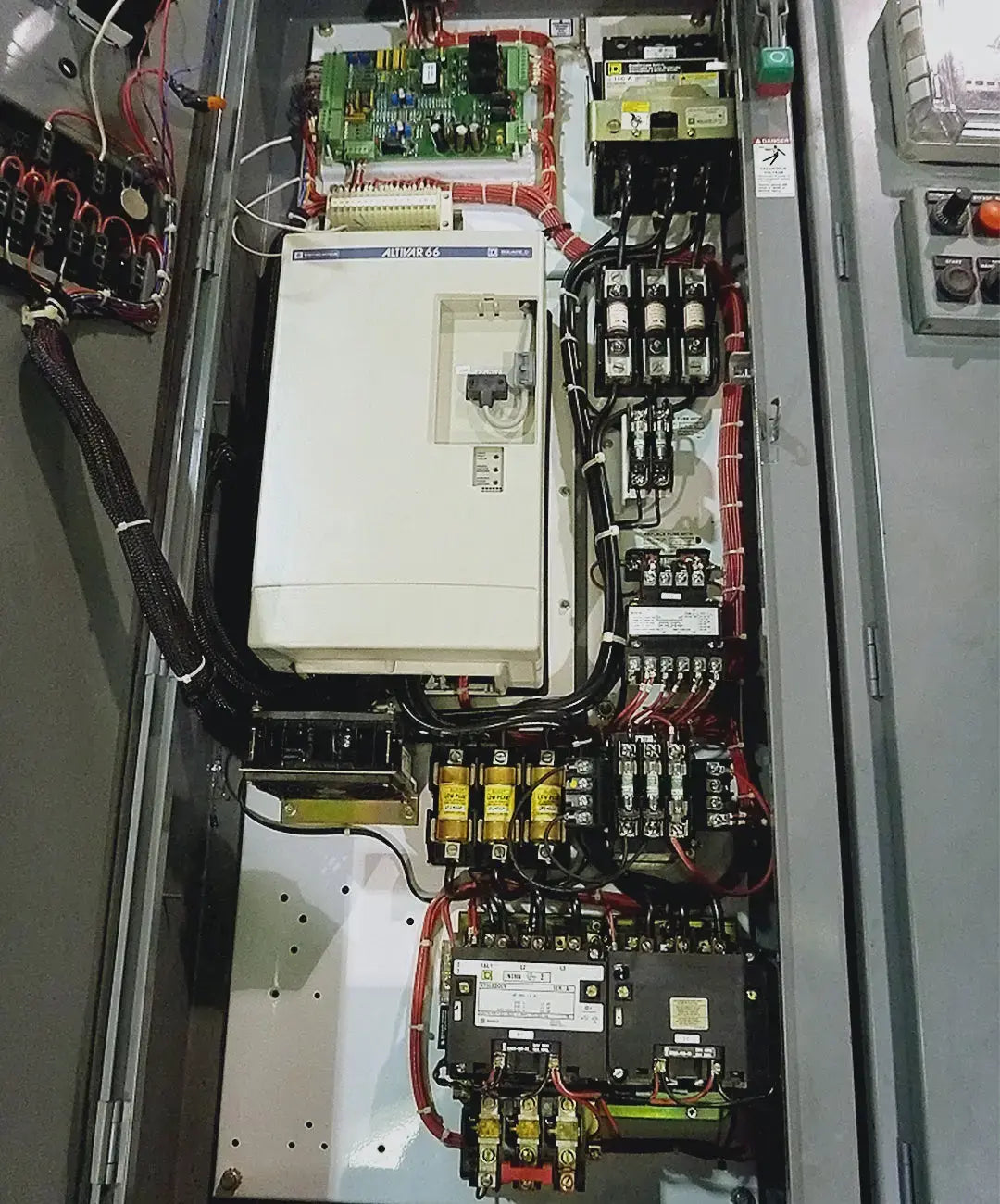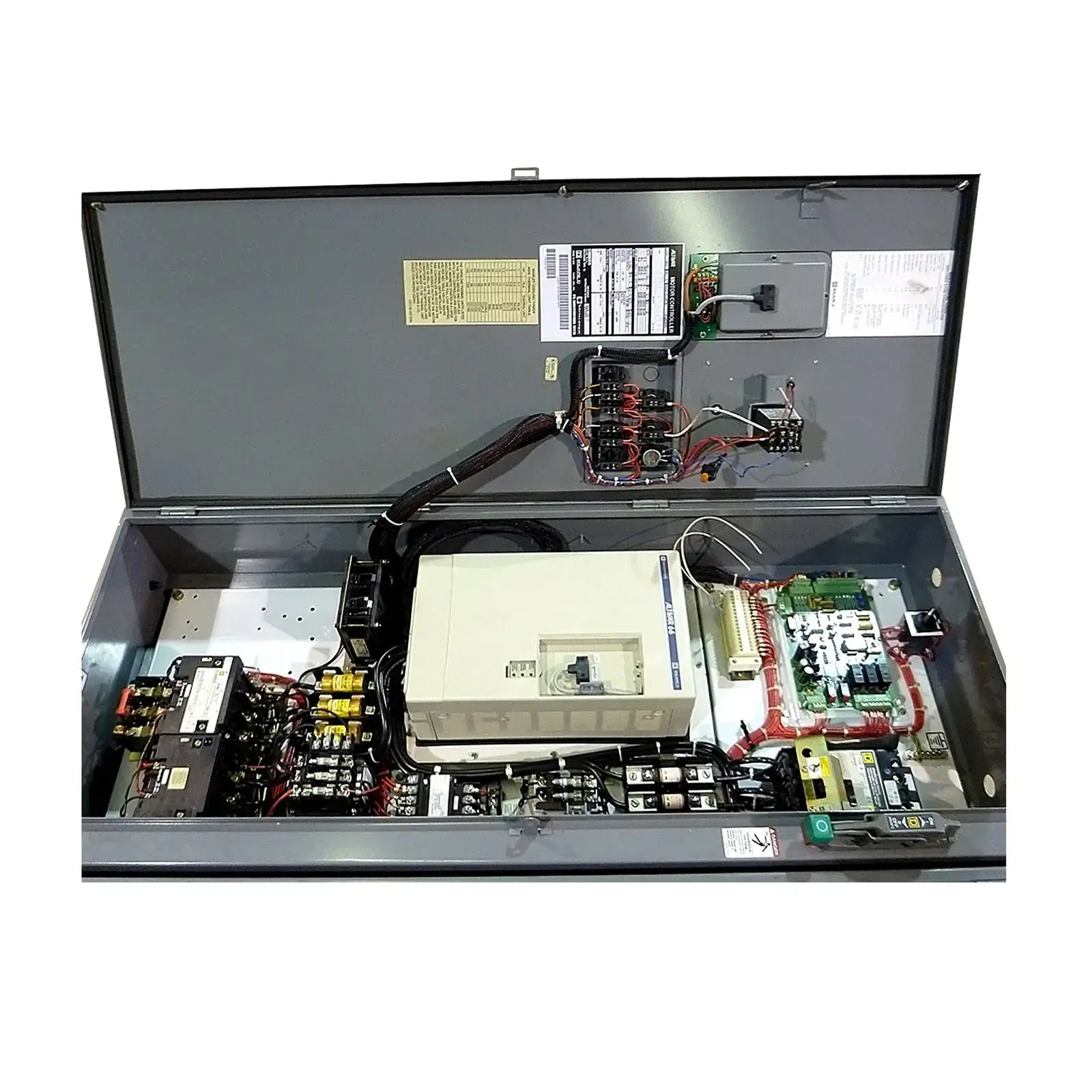 Marley Cooling Tower Control Panel. Includes Altivar motor controller. 20 HP / 15 KW, 460V, 3-phase, 60 Hz, 27 amps output. Quantity available: 1 (1 has sold).