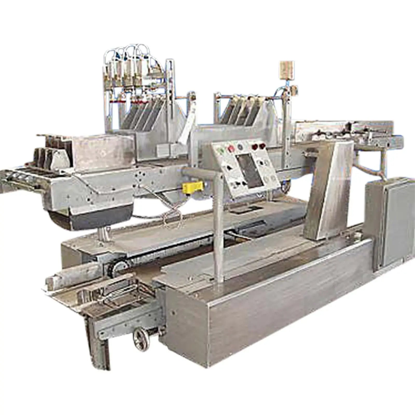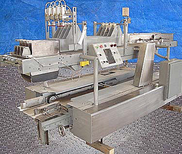 Meyer Case Packer. Model M. Set for 2 x 4 format for 4-1/2 in. dia. x 11-13/16 in. bottles. Capacity: 25-30 cpm. Motor: 1 hp, 1740 rpm, 220 V, 3 phase. Conveyor: 7-1/2 ft x 2 ft. Can be set for different bottles and different format. Case packer heads available for different formats. Overall dimensions: 152 in. L x 61 in. W x 72 in. H. (XMR84). (BG) cont-2
