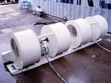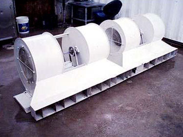 (2) Four Fan Air Curtains. Catalog Number: B0961, Unit Number: BC-150C, Product code: 176-315CA. Blower housing 25. One motor controls 2 blower units at a time via a Pulley/chain system. Total motors per. blower unit is two. Unit 1: Lincoln motor, 2 hp, 1720 rpm, 230/460 V, 6.2/3.1 amps, 60 Hz, 3 phase. Pulley ratio: 1. Final rpm: 1720. General Electric motor, 2 hp, 1720 rpm, 230/460 V, 6.2/3.1 amps, 60 Hz, 3 phase. Pulley ratio: 1. Final rpm: 1720. Unit 2: (2) Lincoln motor, 2 hp, 1720 rpm, 230/460 V, 6.2/3.1 amps, 60 Hz, 3 phase. Pulley ratio: 1. Final rpm: 1720. Overall dimensions: 9 ft. L x 34" W x 31" H.