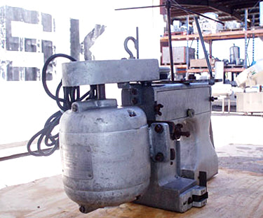 Minneapolis Bag Sewing Machine. Model: J175. S/N: 851. Master electric motor, 1/8 hp, 1725 rpm, 115 V, 3.4 amps, 60 Hz, single phase. Overall dimensions: 1 ft. 5-1/2 in. L x 9-3/4 in. W x 1 ft. 4 in. H.