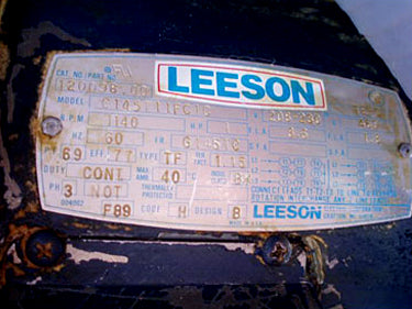 - If Multiple Motors, Motor Descriptions vs specs: (1) 1.5 hp Baldor electric motor, and (1) 1 hp Leeson electric motor