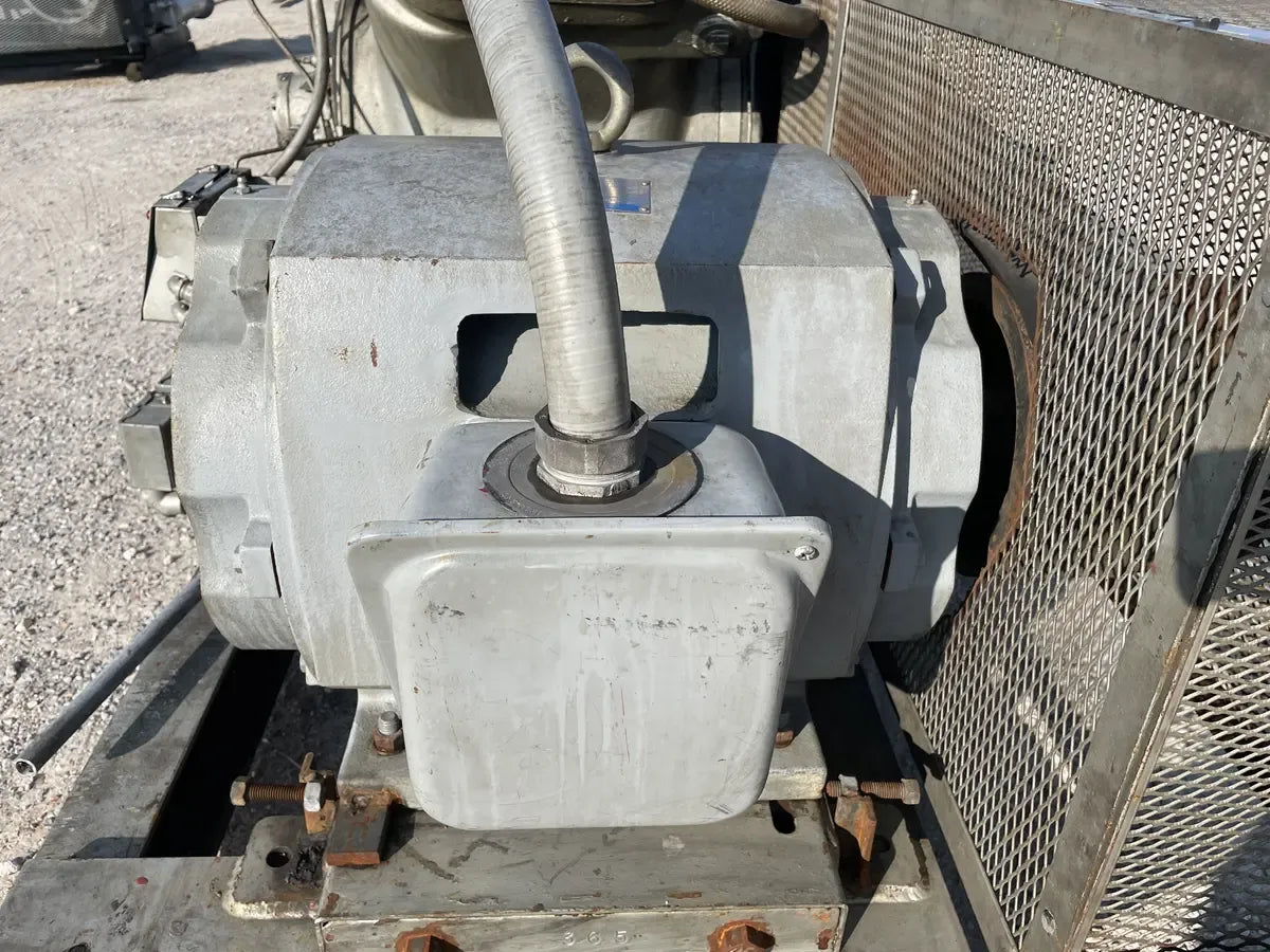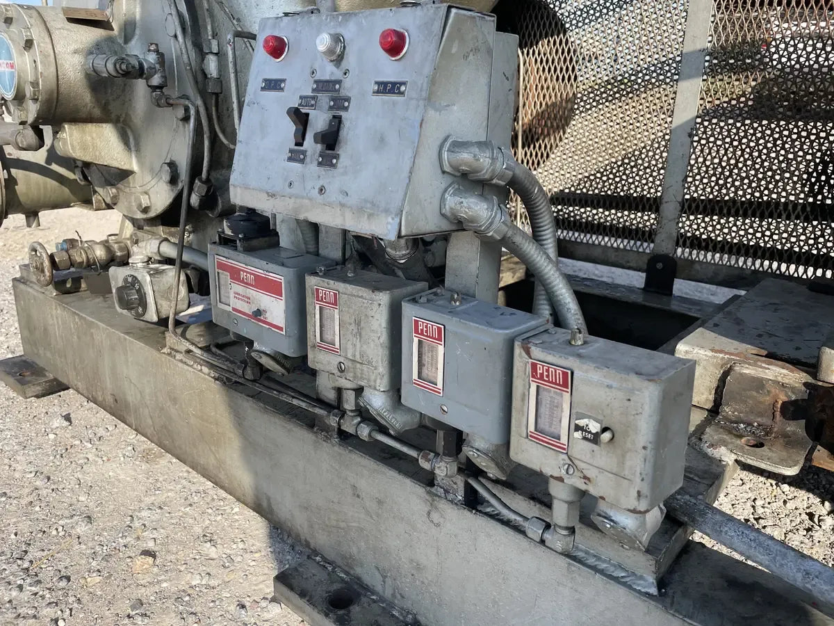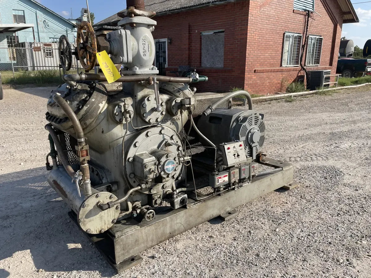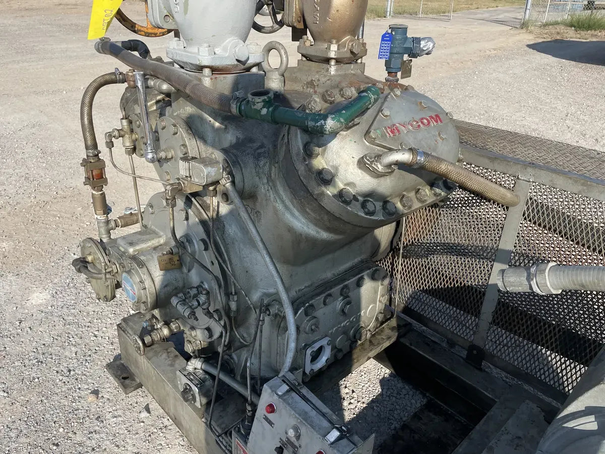 Mycom 4-Cylinder Reciprocating Compressor. Model: N4B, Serial No: 10942, Leak Test Pressure (PSIG) 313 HP/185 LP, Hydrostatic Test Pressure (PSIG) 470 HP/470 LP. Teco Westing House Motor: Type: ASHE, Rating: Cont, HP: 75, Frame:365T, Poles: 4, Ins: F, Phase: 3, Hz: 60, Volts: 230/460, AMPS: 179/89.5, RPM: 1775, Design: B, AMB: 40c, Nema Nom EFF: 95.0, Bearings: 6314, Serial No: JJ7897180015, Usable On 208 Volts Network @ 198 AMP.