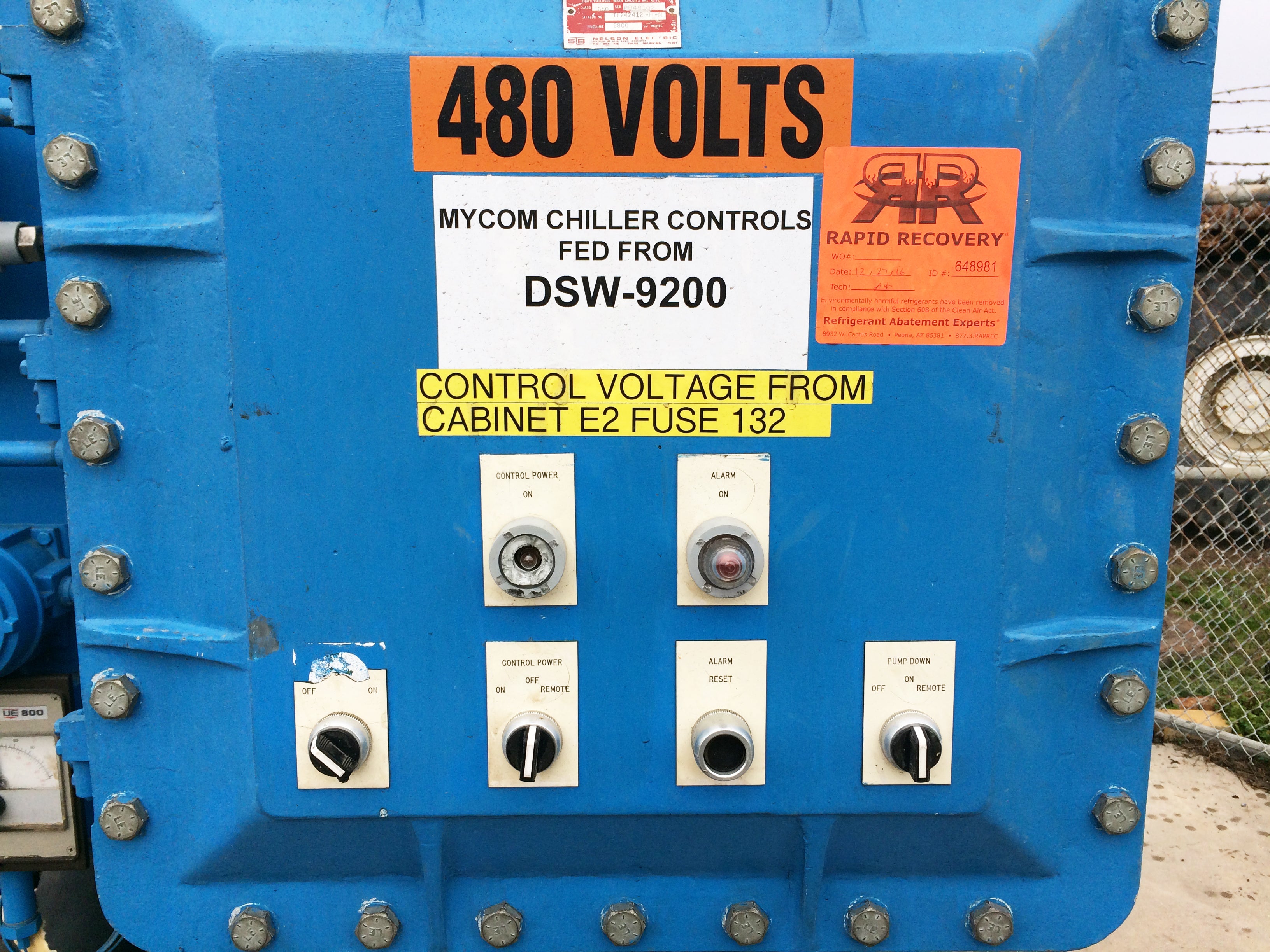 - Compressor Descriptions: Mycom 2-stage 6-cylinder reciprocating compressor: model F42WB, serial 640483, 75 HP, 460V, 3-phase, 60 Hz.
